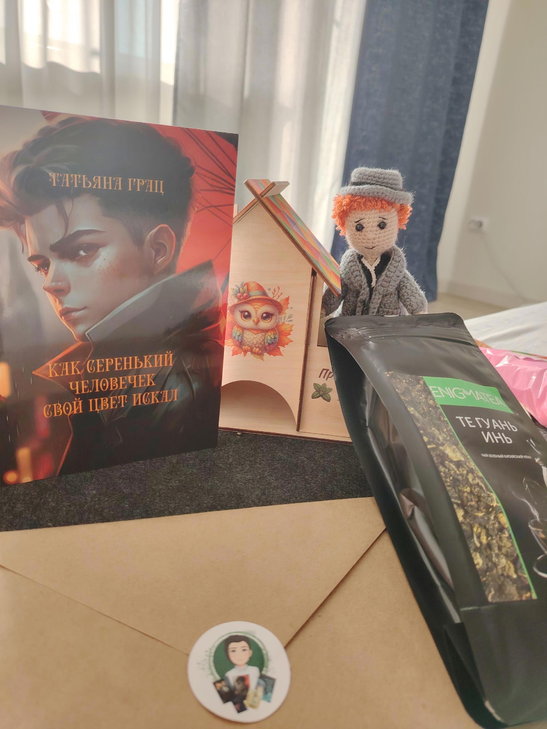 Июнь выдался на редкость насыщенным, я была дома один день в середине месяца и вот сегодня второй - только-только выспалась после 13 часов в ночном автобусе и распаковала посылку от замечательной Татьяны Грац, которая своими руками связала очаровательного Игни в серой шляпе и сером пальто и подыскала для него Чайный домик.