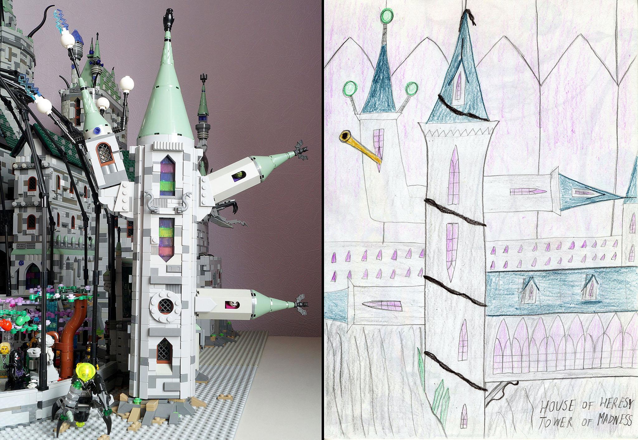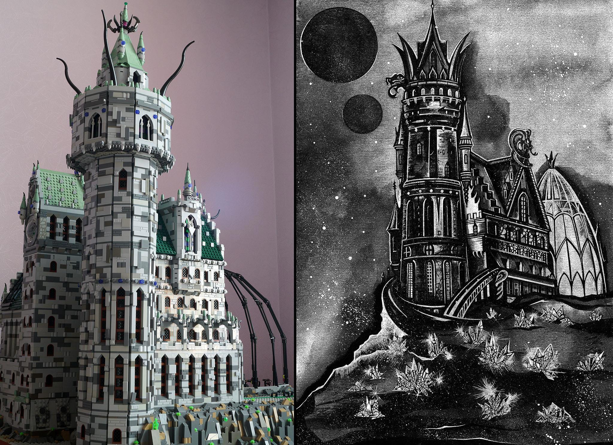 Автор: Феликс ЭйлиТёмный Замок из LEGO и на моих эскизах (большинство из них нарисованы в 2010-2011 годы). При создании модели я поступил, как разработчики игры Hogwarts Legacy по отношению к Хогвартсу из фильмов - сохранил общую форму и план замка, но где-то сделал посложнее и покрасивее, а где-то, наоборот, упростил.