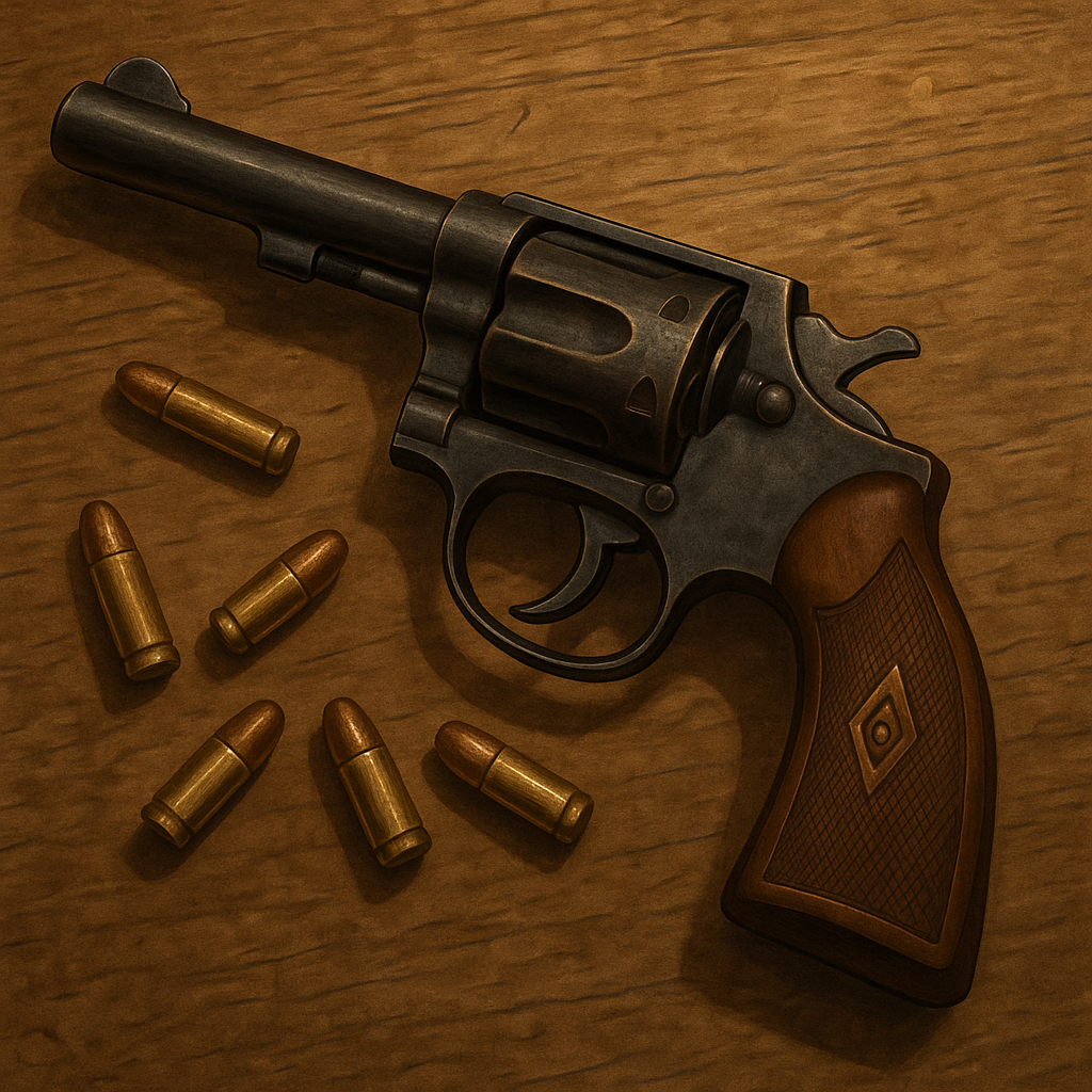 Майк усмехается, возвращается к столику, берет револьвер. Откидывает барабан, роется в кармане, загоняет в одну из ячеек патрон. Затем опускается на пол, опирается спиной о стенку и произносит совершенно другим тоном: