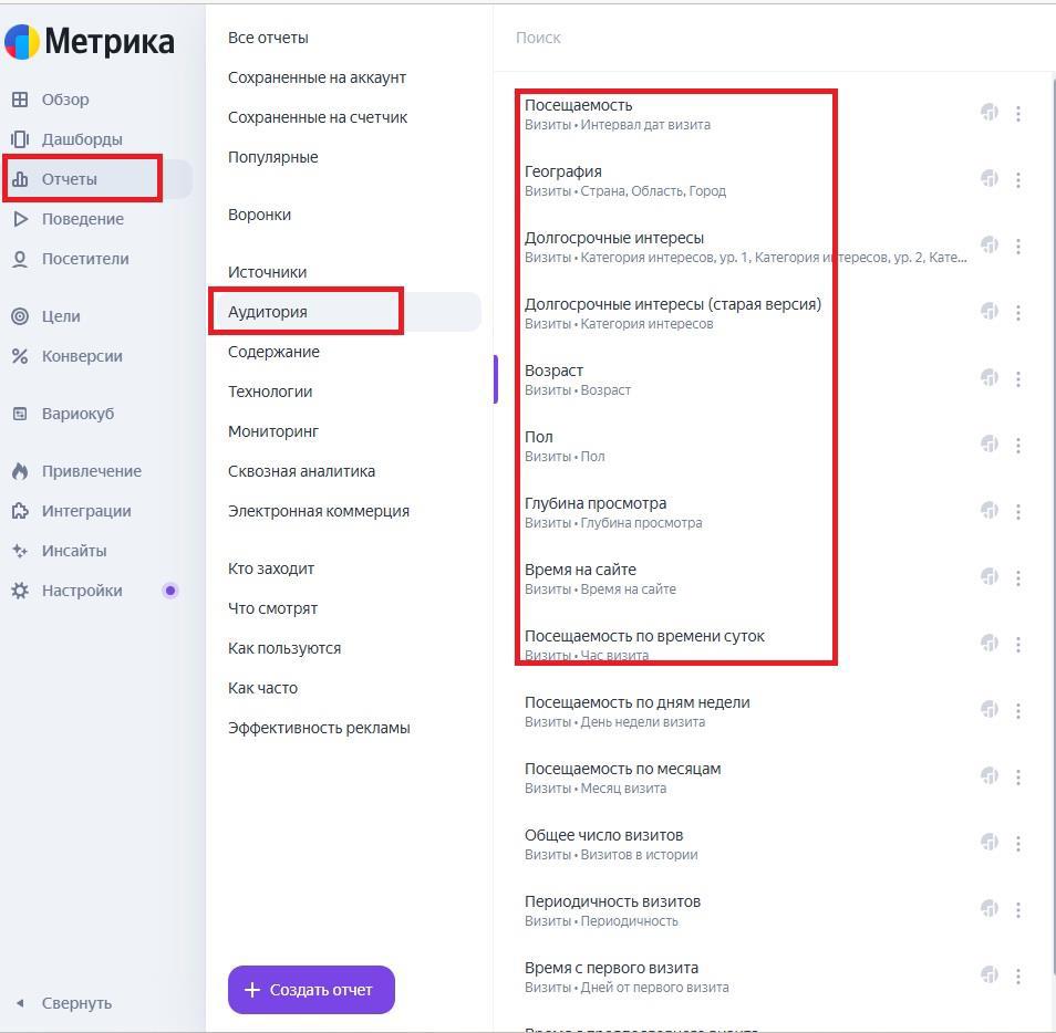 Метрика открывается в браузере, отдельно от АТ. А интересная нам вкладка ищется так: