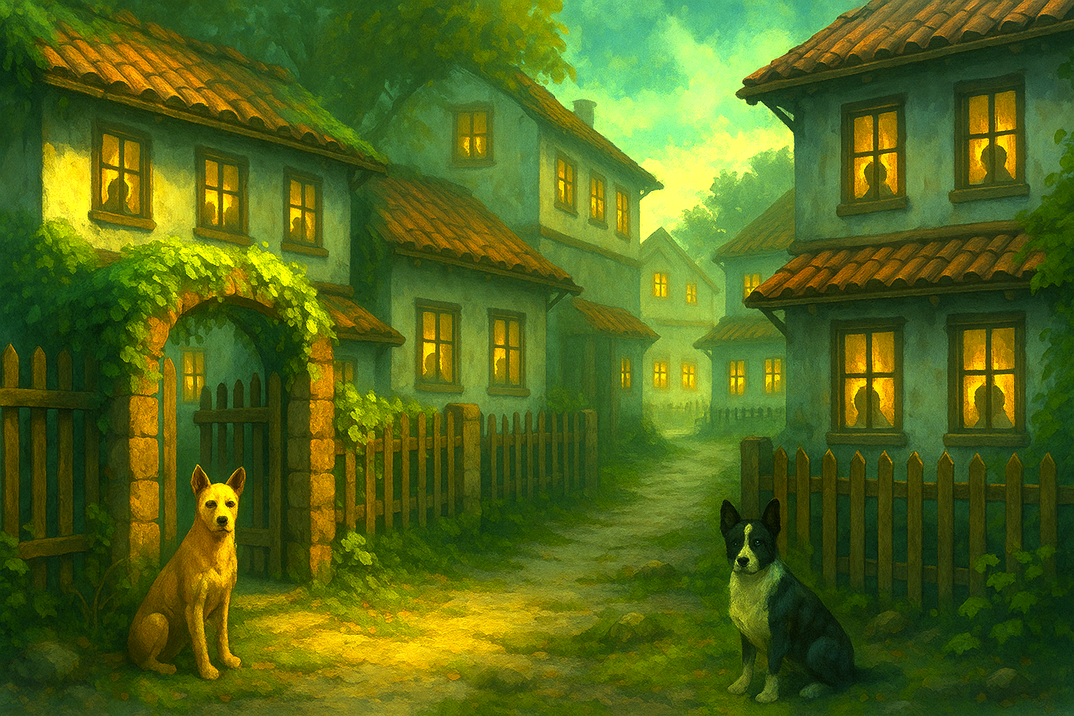 Дома стояли безупречно чистые, будто их только что вырезали из бумаги и воткнули в землю. Из почти каждого окна на нас глядело по паре глаз. Дети не кричали. Даже собаки не лаяли. Хотя собаки здесь были — стояли у калиток без движения и не сводили с нас глаз.