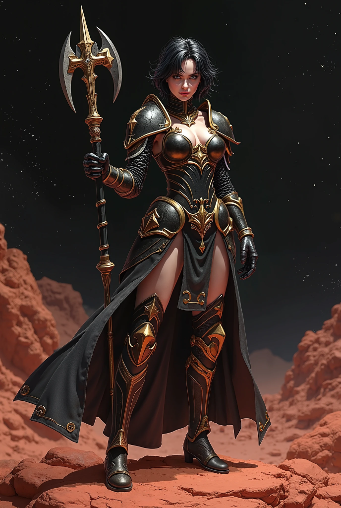 Несмотря на все попытки указать в описании "полный доспех", дева всё равно выходит частично обнаженной. Но хотя бы частично. Это - самый одетый и симпатичный вариант. Примерно так леди Анна и выглядит, только еще более одетая. Зато Марс получился неплохо. Добавил картинку в дополнительные материалы к книжке.