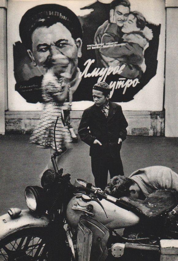 Автор: Ксения ЛисицинаИнтересное фото. Автор Уильям Кляйн. Французский фотограф. На фото люди, простые жители Москвы и примечательная афиша. Это афиша экранизации романа Толстого " Хождение по мукам".