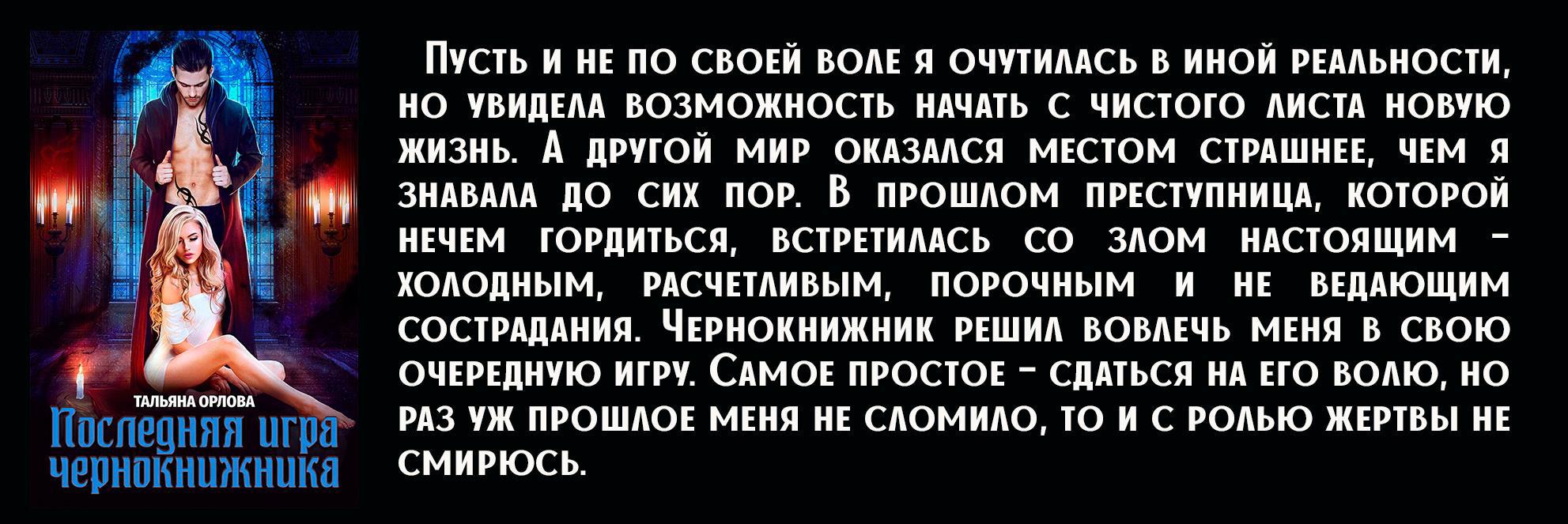 Автор: Тальяна Орлова«Последняя игра чернокнижника» сегодня со скидкой 30%. Однотомник. 18+