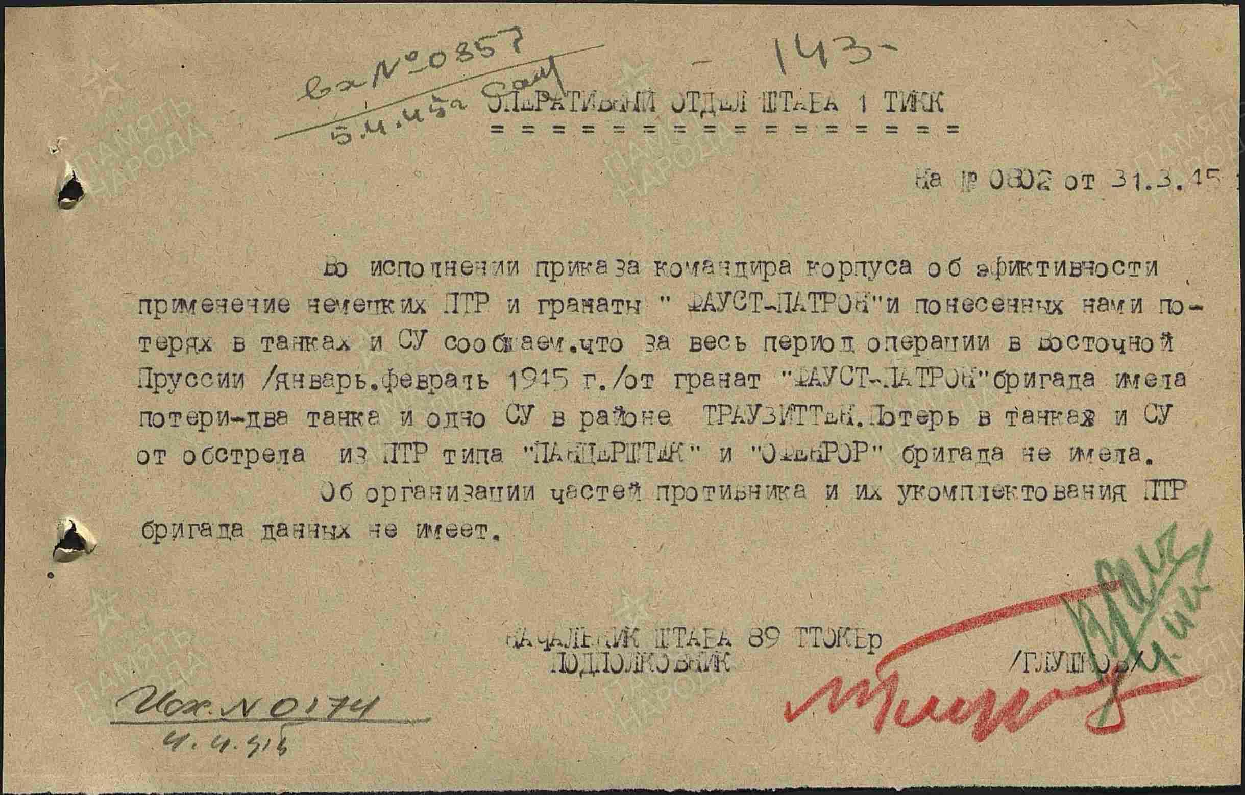Автор: Андрей УлановКак "всем известно", в конце войны немецкие "фаусты" стали жуткой опасностью для советских танков. Но в 45-м советское командование об этом не знало, поэтому пыталось по рапортам частей оценить реальные масштабы угрозы. А рапорты получались всякие...