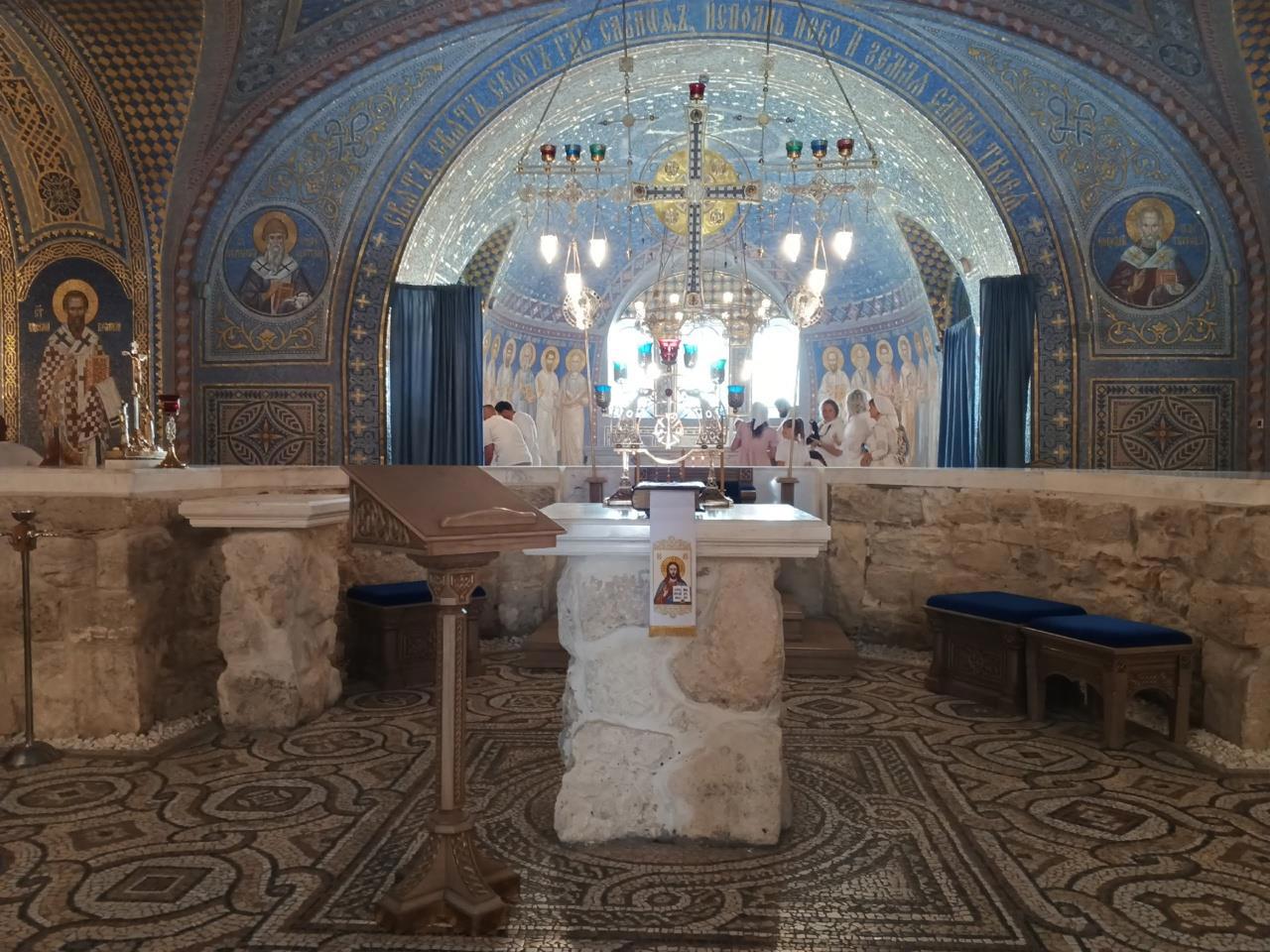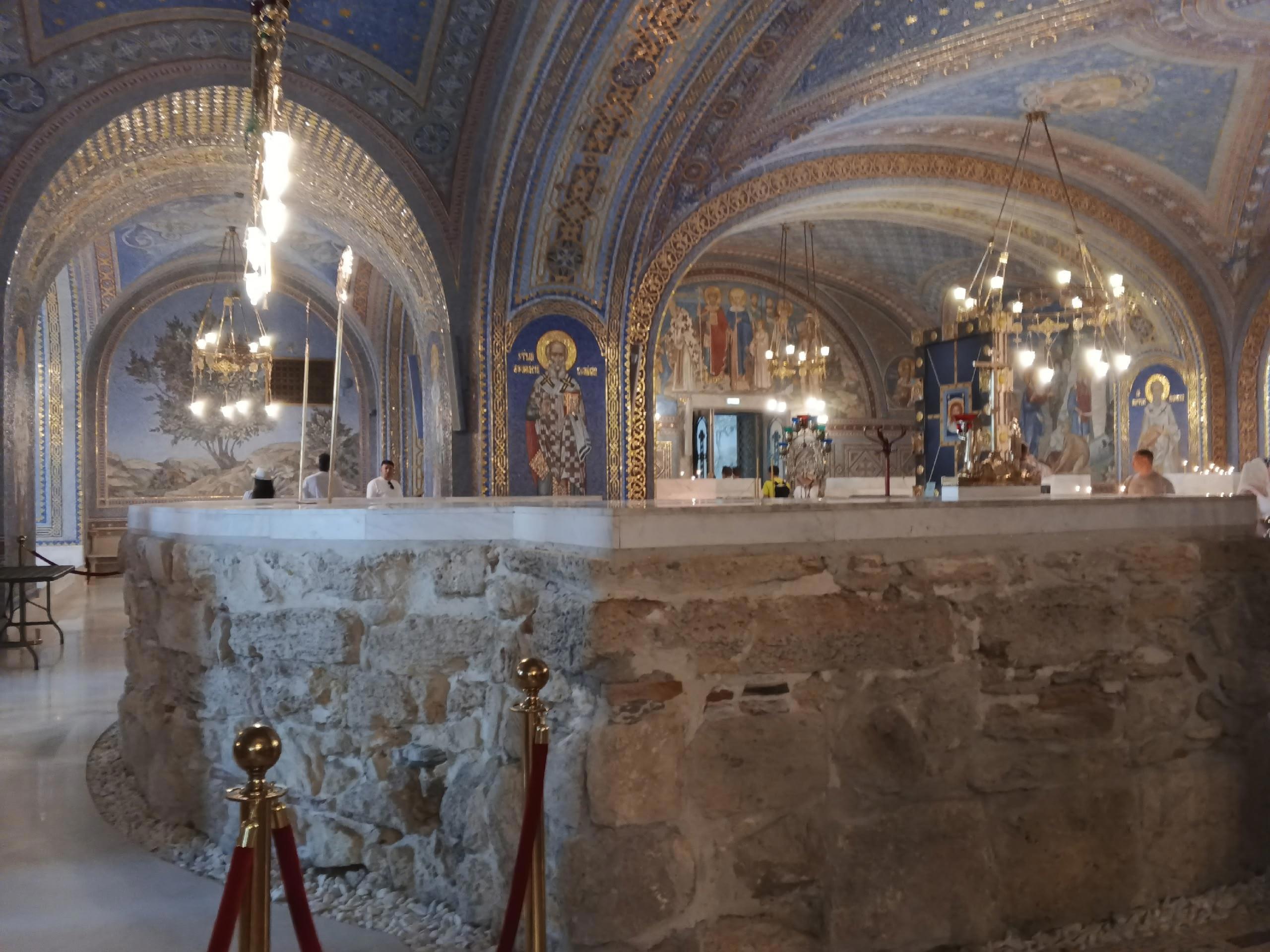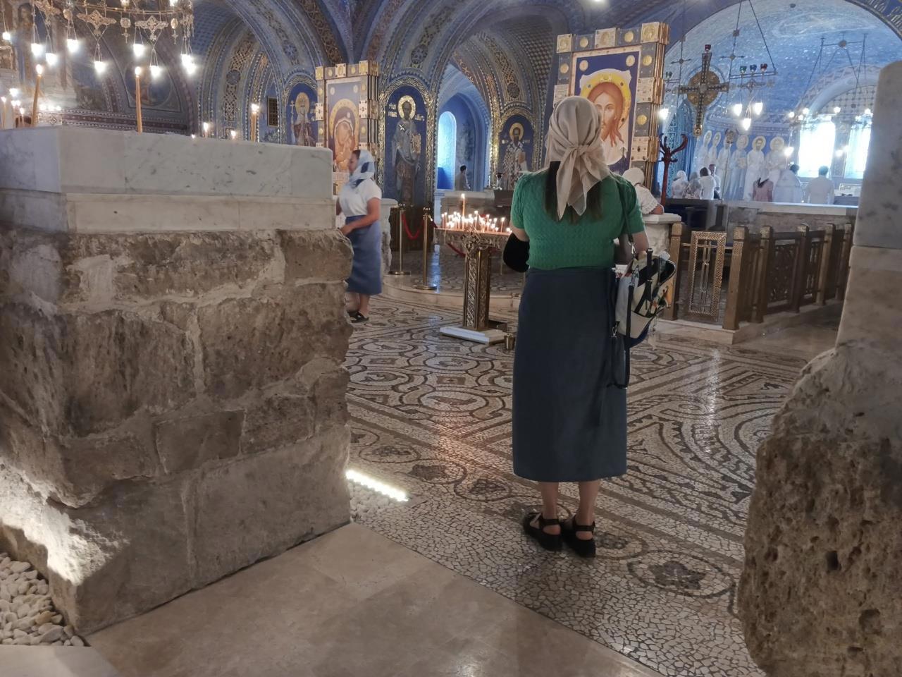 Здесь и паломники, и экскурсанты, и даже впереди идёт таинство крещения. Фото Галины Малышевой.