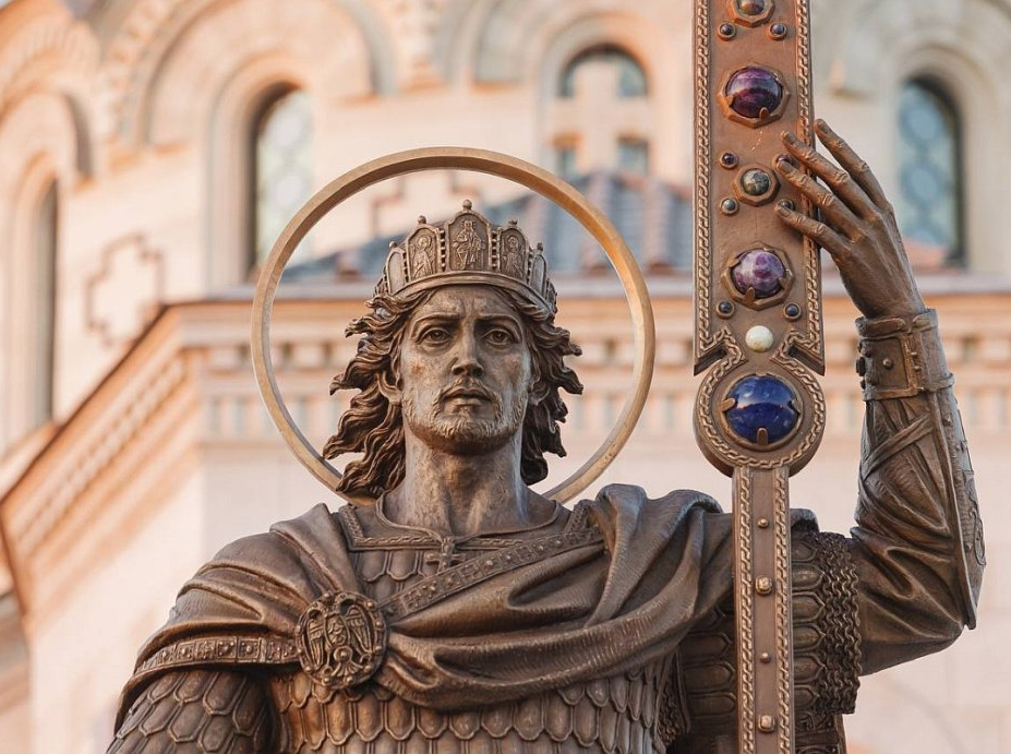 Перед самим храмом нас встречает князь Владимир.