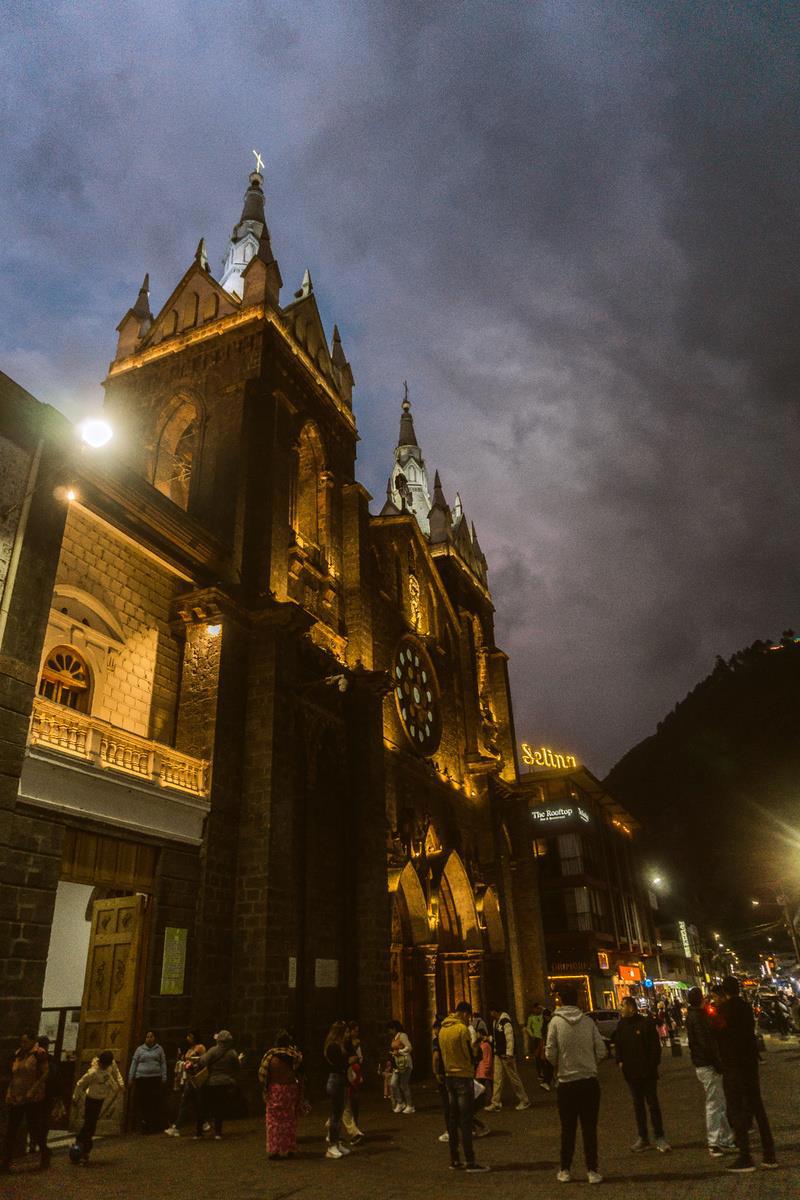 Таки вот, Дева Мария не раз спасала горожан от взрывного характера Мамы Тунгурауа. Баньос прославился явлениями Богородицы, которые происходили не единожды и закреплены в анналах католической церкви (там вообще с чудесами всё строго, все на учёте и в расследованиях). Потому и решили возвести в славном граде церковь имени святой. Отец Томас Корнелио Халфлантс начал строительство в веке девятнадцатом, а завершил в веке двадцатом — в 1929 году.