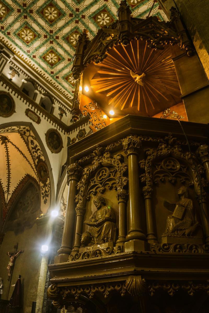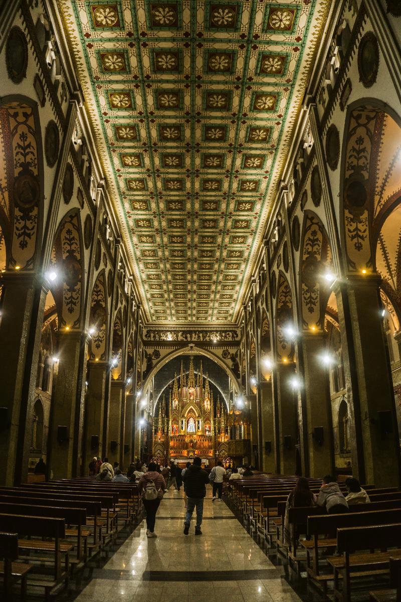Кстати, туристам на заметку. Никто плату за фотографирование внутри не взимает, да и вообще снимать не запрещает. Делаешь из себя русо туристо с облико морале — и вуаля! Без вспышки — можно. Тем более многие там снимают на телефоны. Наверное, бояться пропустить чудо. Но на самом деле чудо, что эта церковь в неоготическом стиле вообще устояла против Мамы Тунгурауа. То ли у Девы с вулканихой договорённость, то ли просто кто-то немножечко сильнее. Угадайте с двух попыток кто...