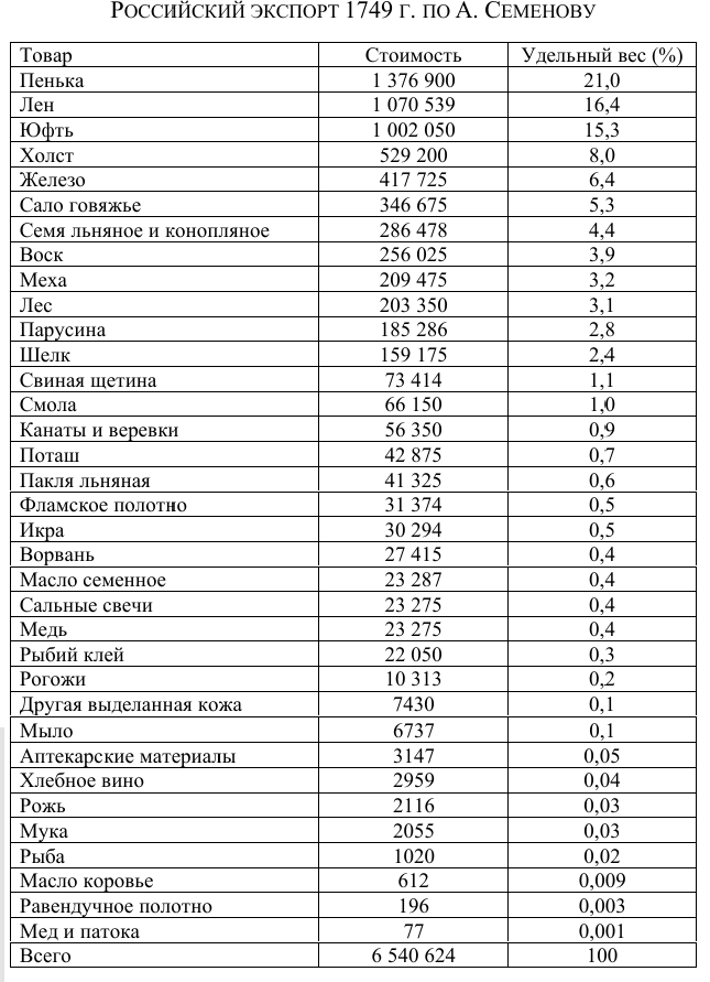 При этом Россия вывозила предметы роскоши в гораздо большем количестве чем ввозила. На вывоз шла юфть (дорогая выделанная кожа), меха, дорогие сорта тканей и тому подобное. Внимательный читатель может удивится - отчего РИ одновременно ввозила и вывозила шелковые ткани? Объяснение простое - шелк покупали в Персии и затем продавали в Европу.