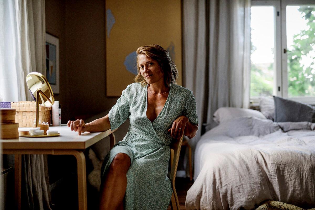 В отзывах к фильму актрису-героиню часто называют красивой, эффектной, чуть ли не рыжей чертовкой. А я удивилась такому отклику. У меня обратное чувство. Героиня, на мой взгляд, крепка и мужиковата. Недаром муж называет её "сильной" партнершей. Мускулистые тренированные ноги, широкие плечи пловчихи, грубоватое лицо.