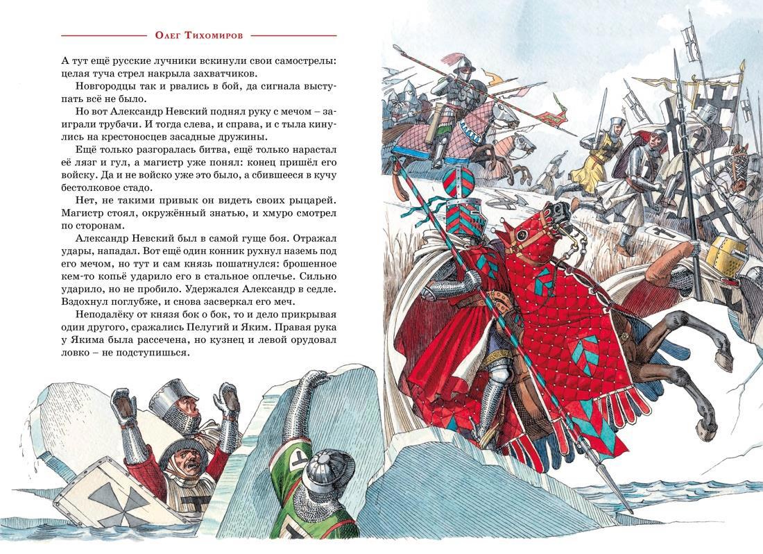 Вот, удивительно легко вздымая меч, он ведёт дружину и ополчение в бой.