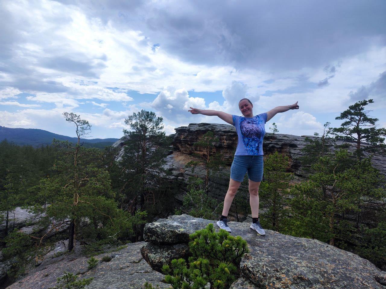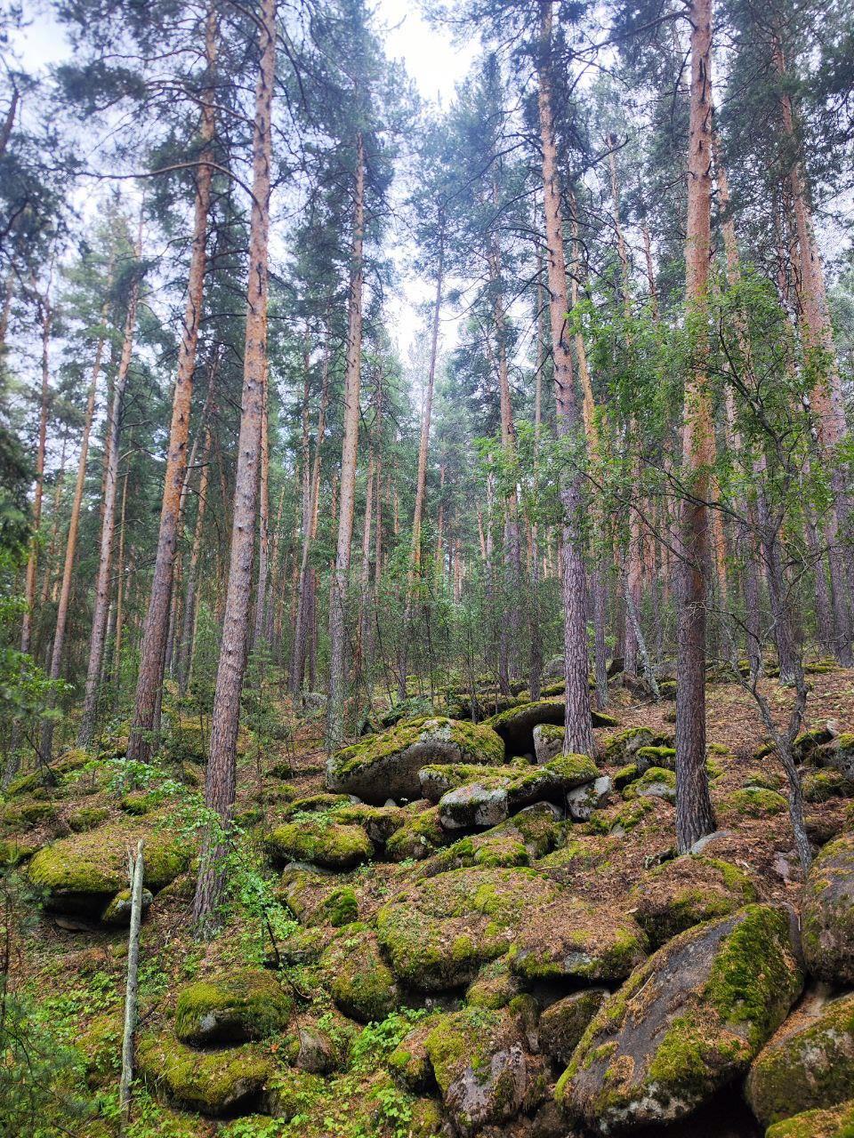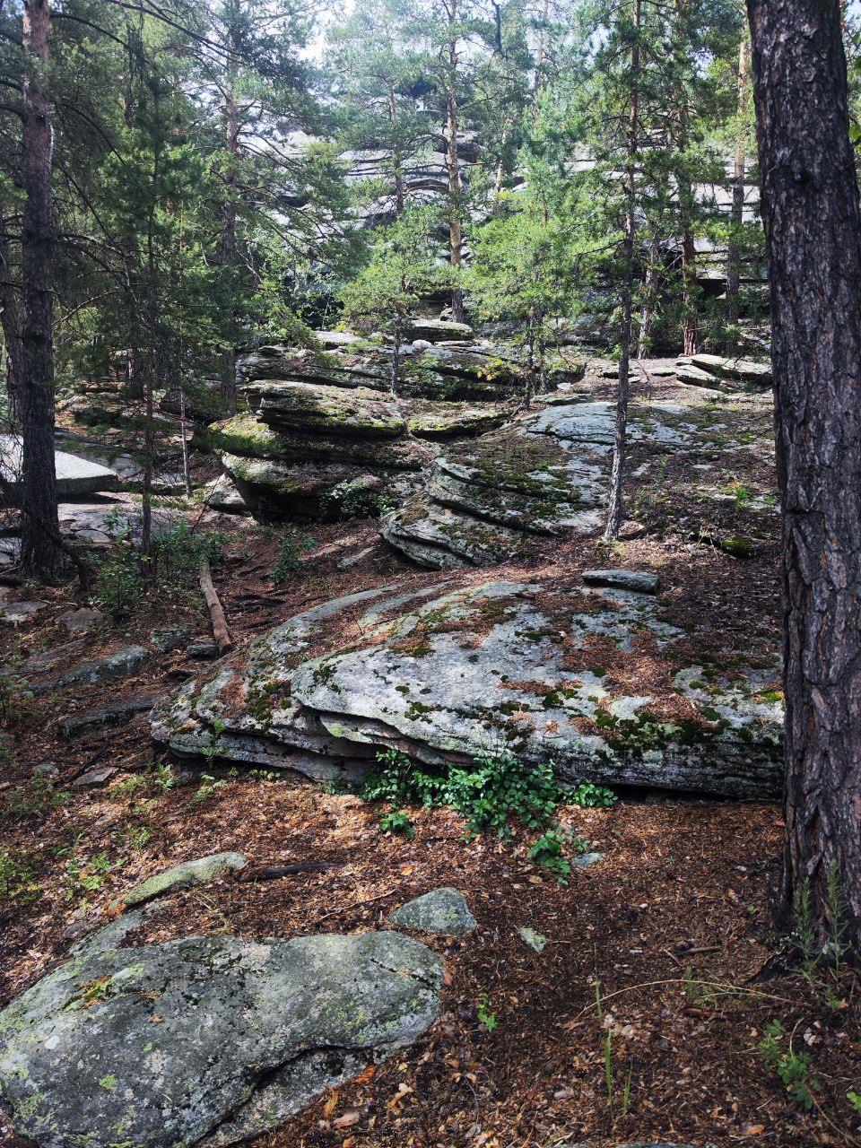 Кто играл в Kingdom Come: Deliverance 2 или бывал в Чехии – Каркаралинский лес с его скалами очень сильно напомнил мне локацию с первой карты, где Генри с Птачеком в одних подштанниках убегали от погони. Из-за недостаточного освещения многие фотографии получились не очень, но вживую место крайне приятное: сосны, камни, скалы, мхи и лишайники. Тропа по алматинским меркам совсем простая: хоть и имеются довольно крутые подъемы, но когда они не на высокогорье с дефицитом кислорода, идти по ним гораздо проще.