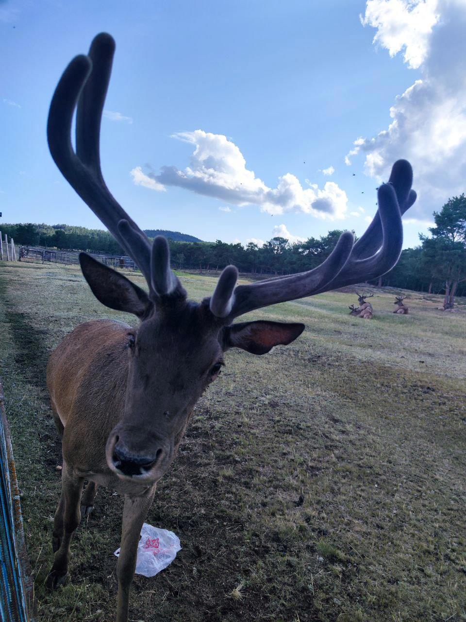 Оказалось, что зубры, как и жирафы, берут угощение не губами, а языком. Было шершаво, мокро и неожиданно. А ещё во время кормления оленей получилось погладить их рога – в начале лета они мягкие и пушистые.