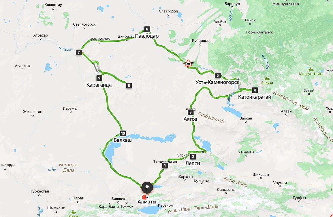 В честь того, что наконец достроили дорогу Алматы – Усть-Каменогорск, а также астанинскую трассу, сезон 2025 было решено ознаменовать пробегом по восточной части Казахстана. Старт и финиш – город Алматы, в процессе были посещены Талдыкорган, Лепсинск (не путать с Лепсы на Балхаше), озеро Алаколь, Аягоз, заповедник Катон-Карагай, Усть-Каменогорск, Павлодар, заповедник Каркаралинск, Караганда, Балхаш, общий пробег с учетом локальных выездов составил 4700 километров.