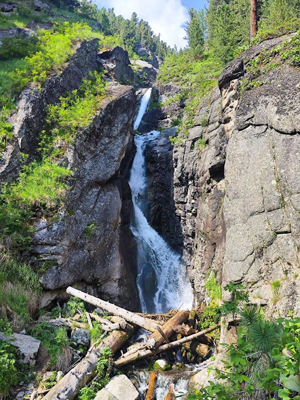 На этом заканчиваю мой возмущённый спич по гостинице и возвращаюсь к Алтаю – он прекрасен. И вообще, нет худа без добра. Помимо озера, на Рахмановских ключах есть ещё одна интересная локация – водопад. К нему можно попасть на лодке, но она стоит наличных (20000 за лодку, т.е. все, кто едет, скидываются до нужной суммы), которых как помним, у нас с собой не было. Но оказалось, что к водопаду можно попасть по тропе вдоль берега озера, примерно 3 км в одну сторону. И хоть тропа местами сложновата (участки с ручьями, поваленными деревьями, большими камнями), она на редкость живописная. Итак, фото с Рахмановских источников: