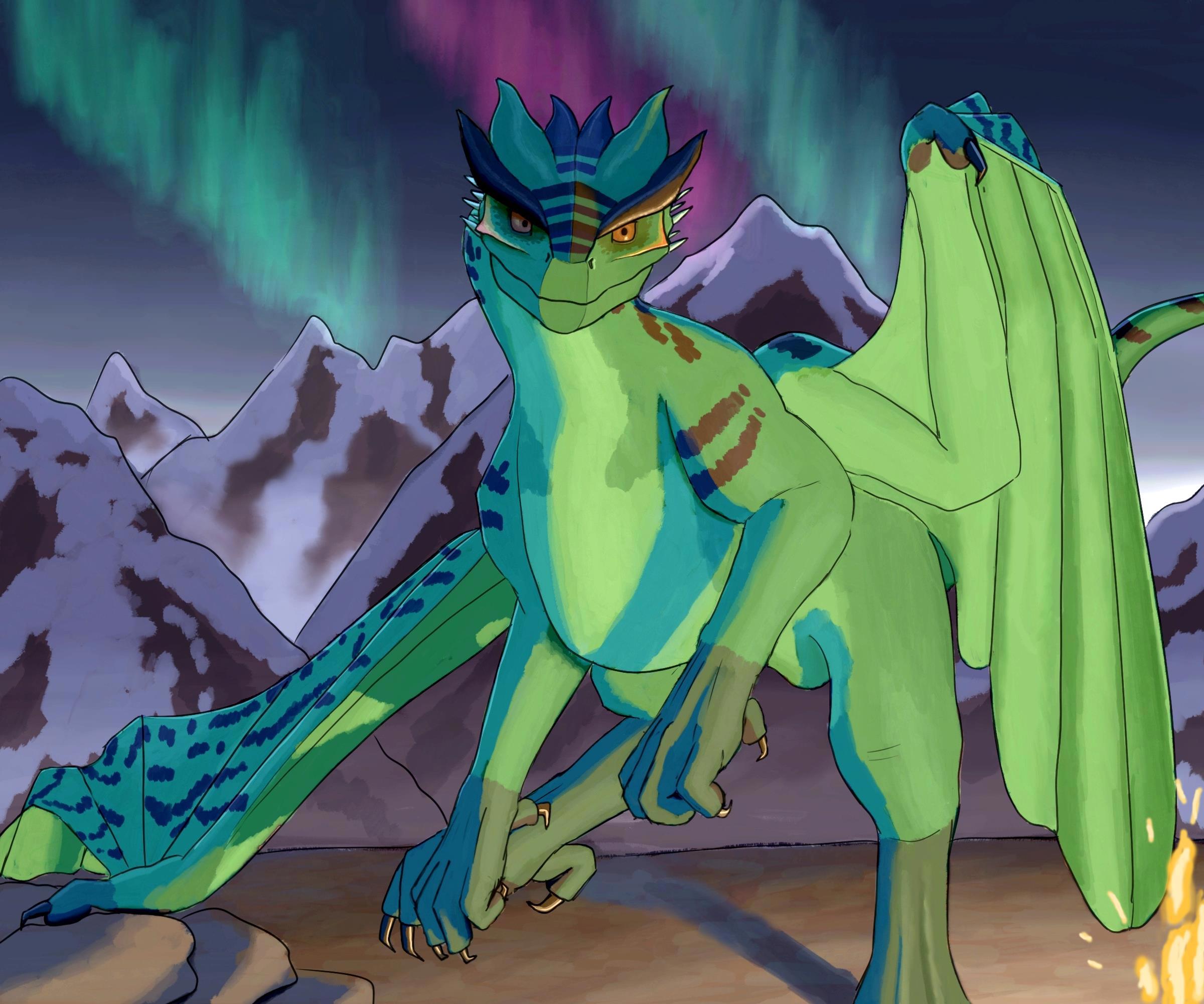 Автор: GibBenkРешил набросать что-то эдакое... Горы? Ночь? Сияние?... Зелёный летун 0_0?? А почему нет?))