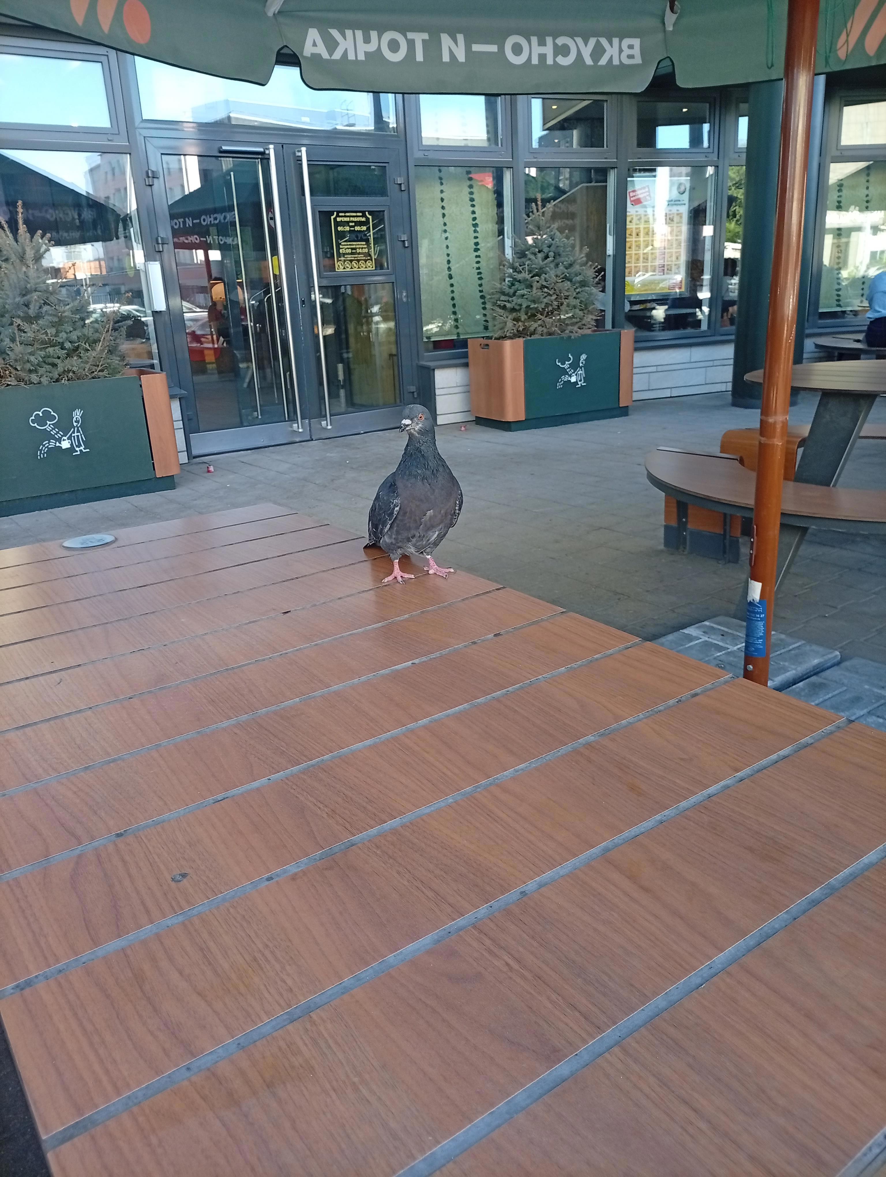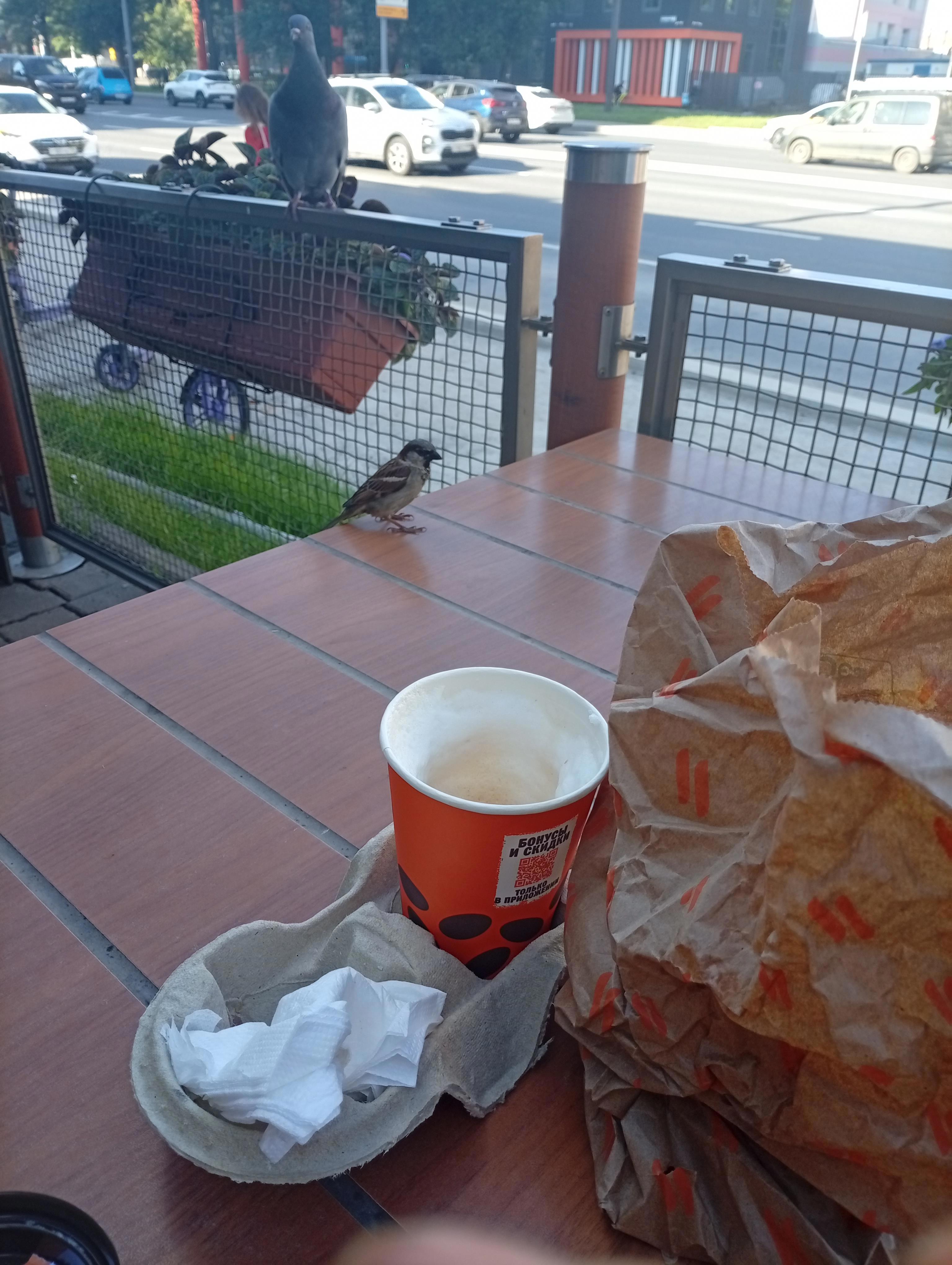 Так все начиналось, ужин в маке в компании голубя и воробья... Они на самом деле сидели рядом))