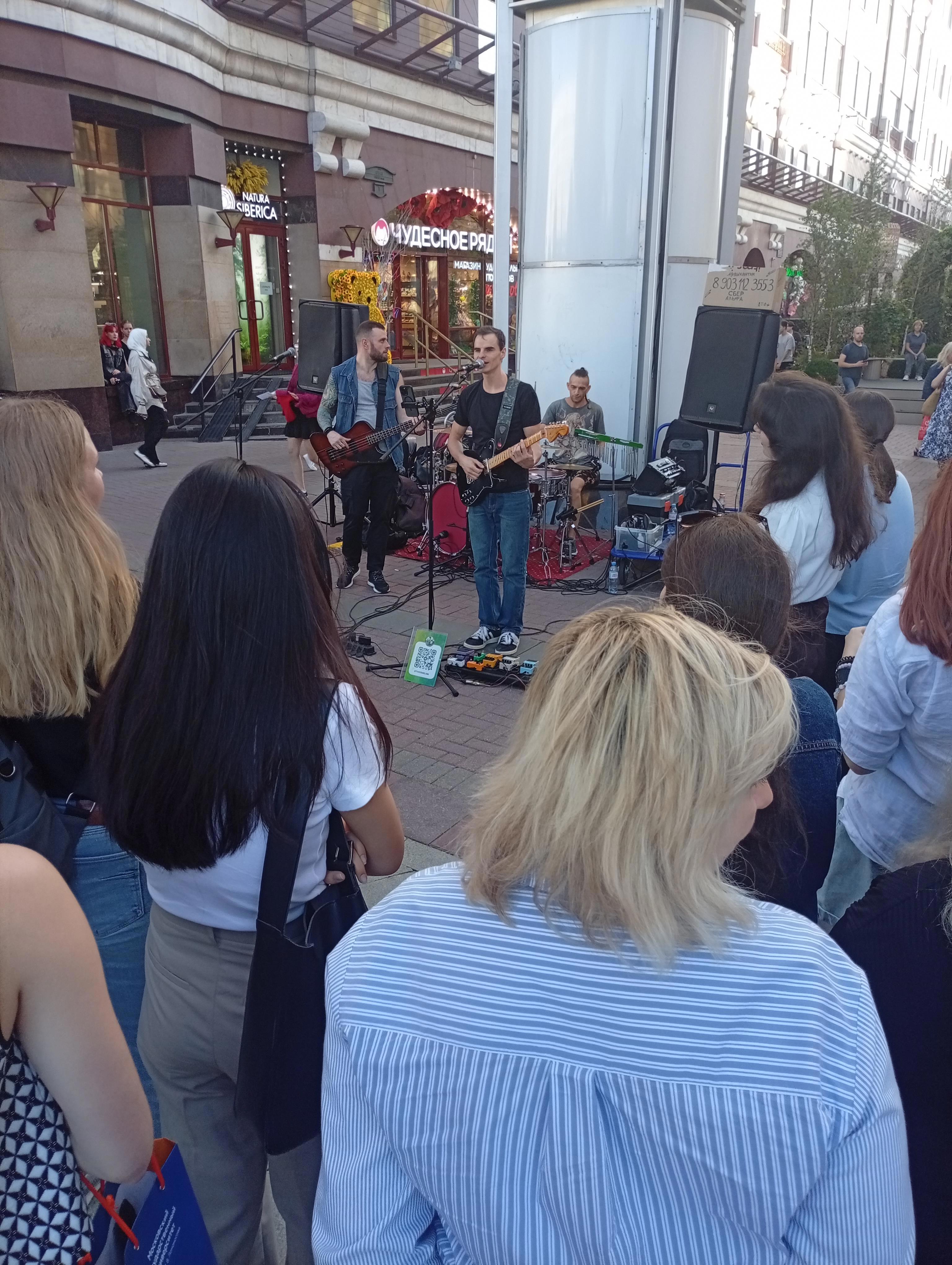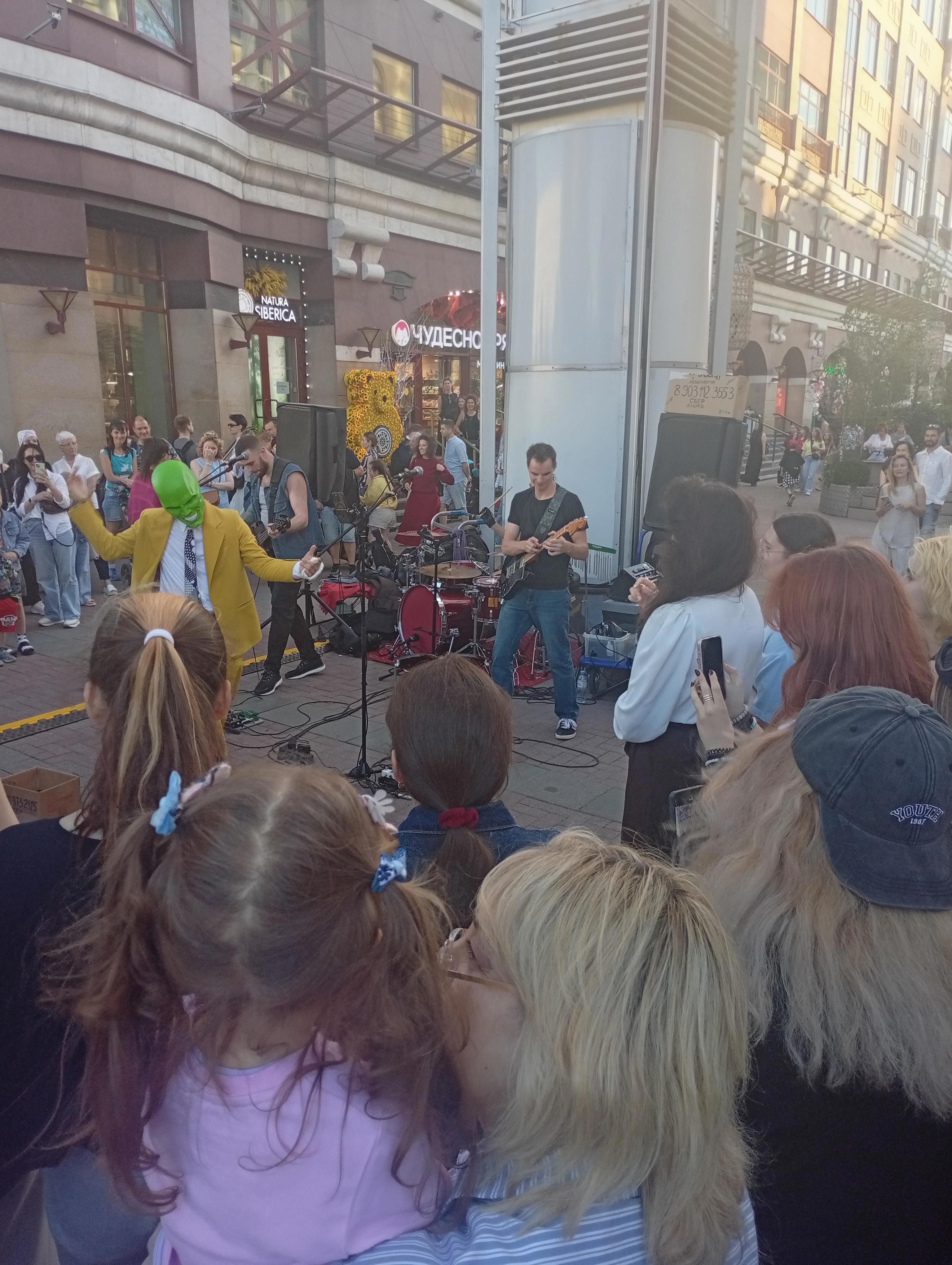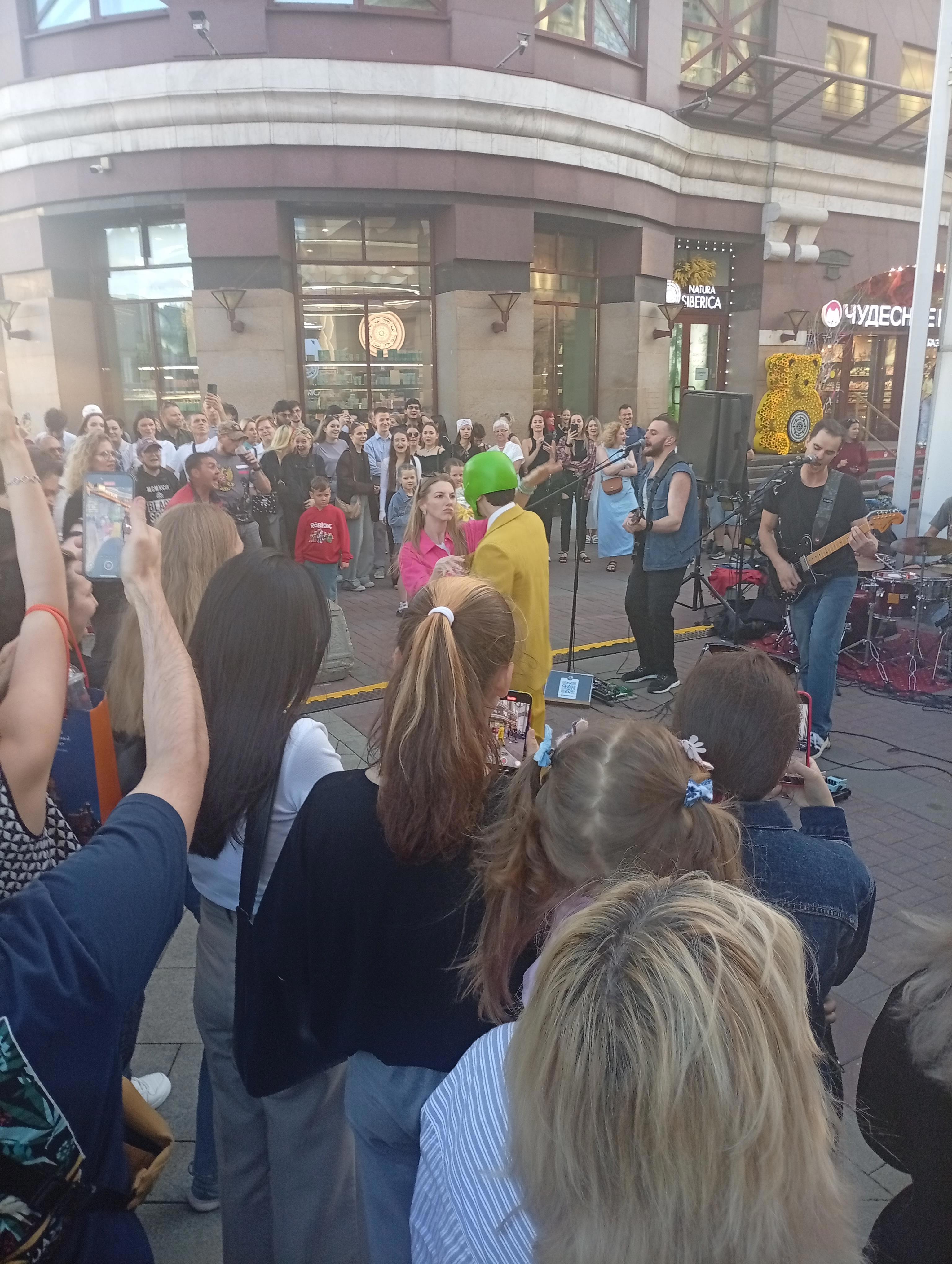 Но главное дальше, я уже вернулся и тут... Ребята играют хиты русского рока и классно играют и поют, устроили настоящее шоу. А люди подпевают как на концерте, музыканты молчат, а зрители поют припевы. Звучат... звери, Ленинград и... Еще много чего. Им бы на эстраду. И ... Все песни про любовь. Зрители всех возрастов... Подростки, средний возраст, бабушки и дедушки.... Такоэач у нас молодежь... И вот что она хочет... Любовь и радость, остальное уже всех достало... Это видно... И еще несколько фото