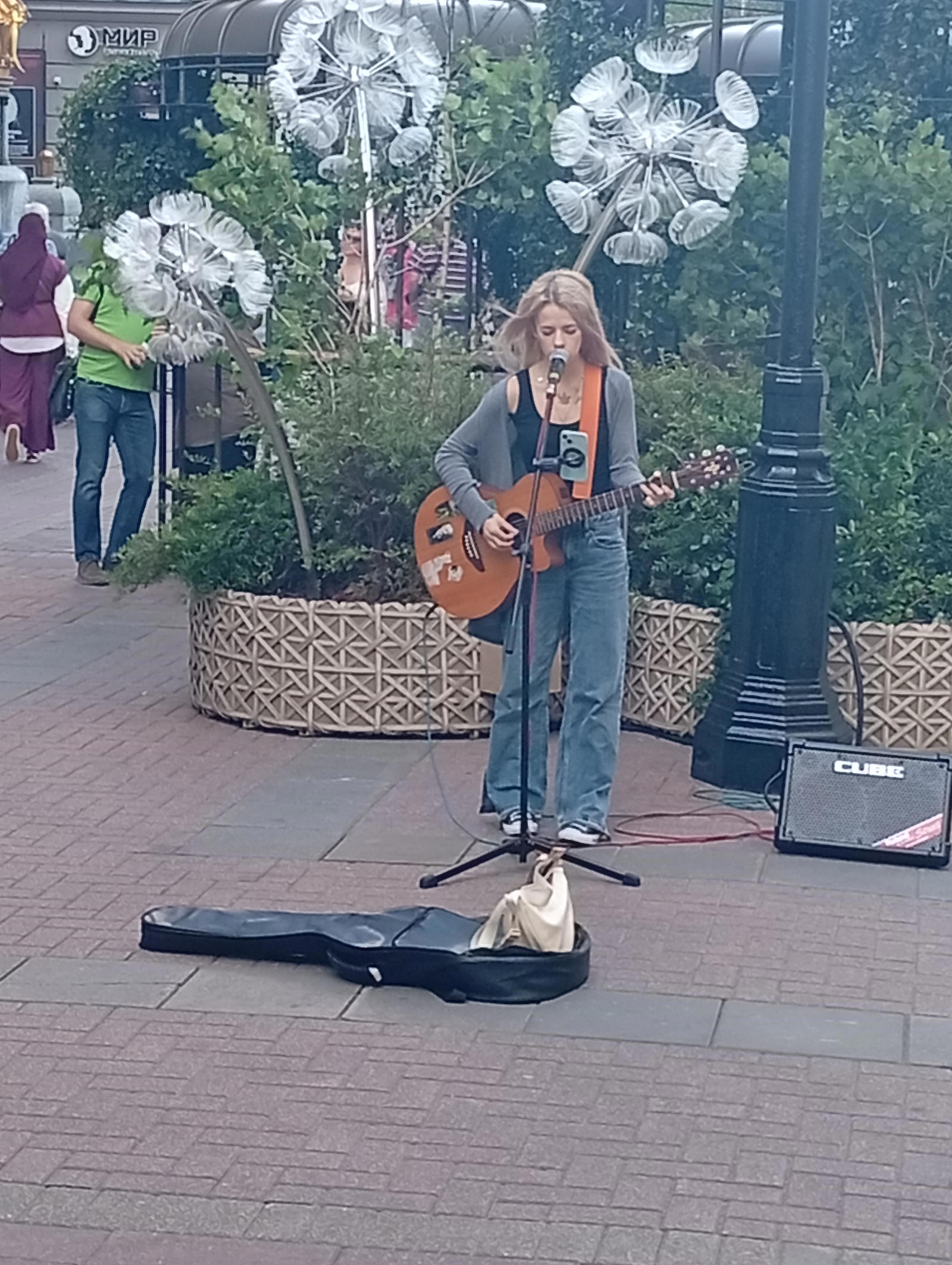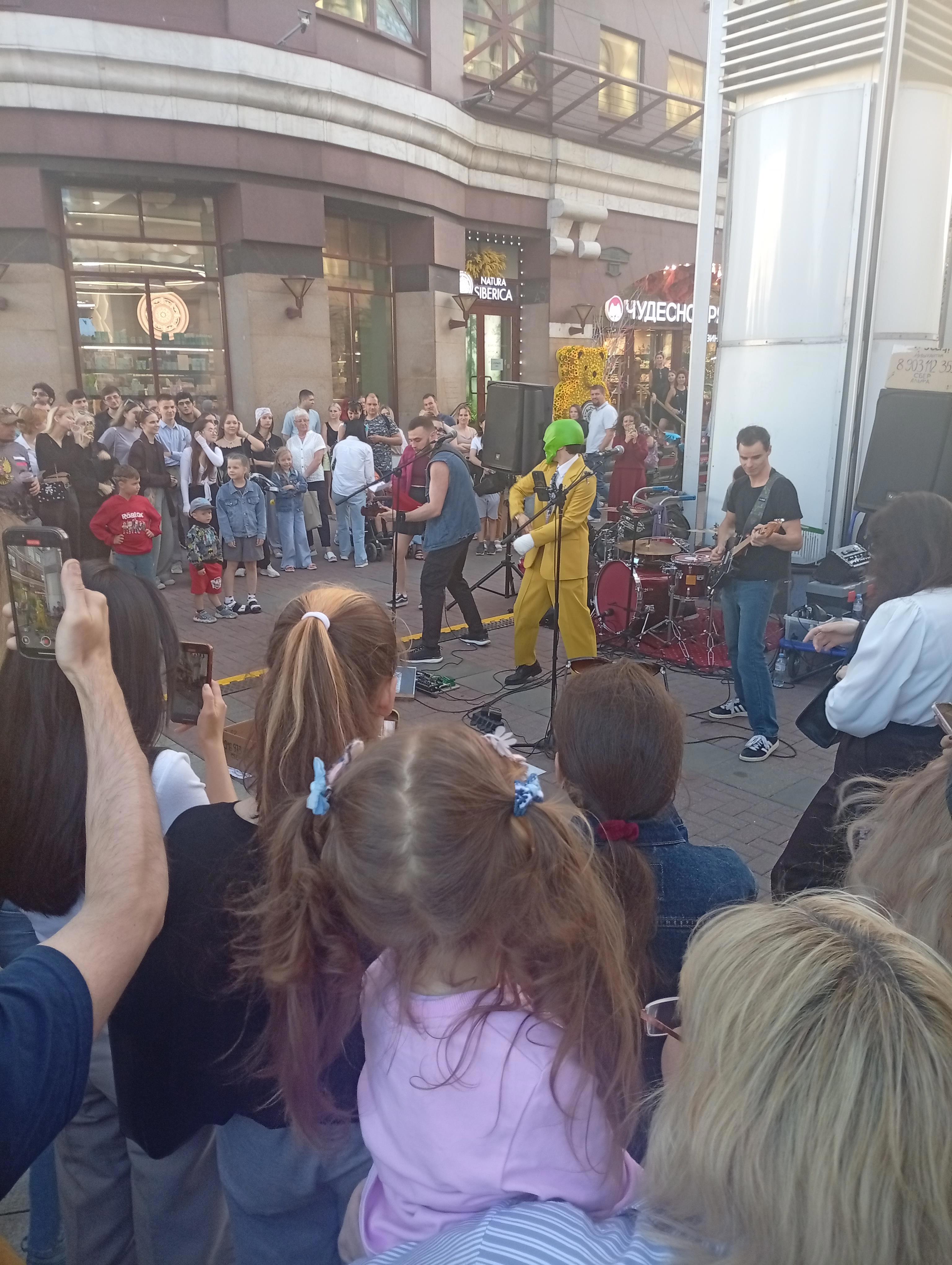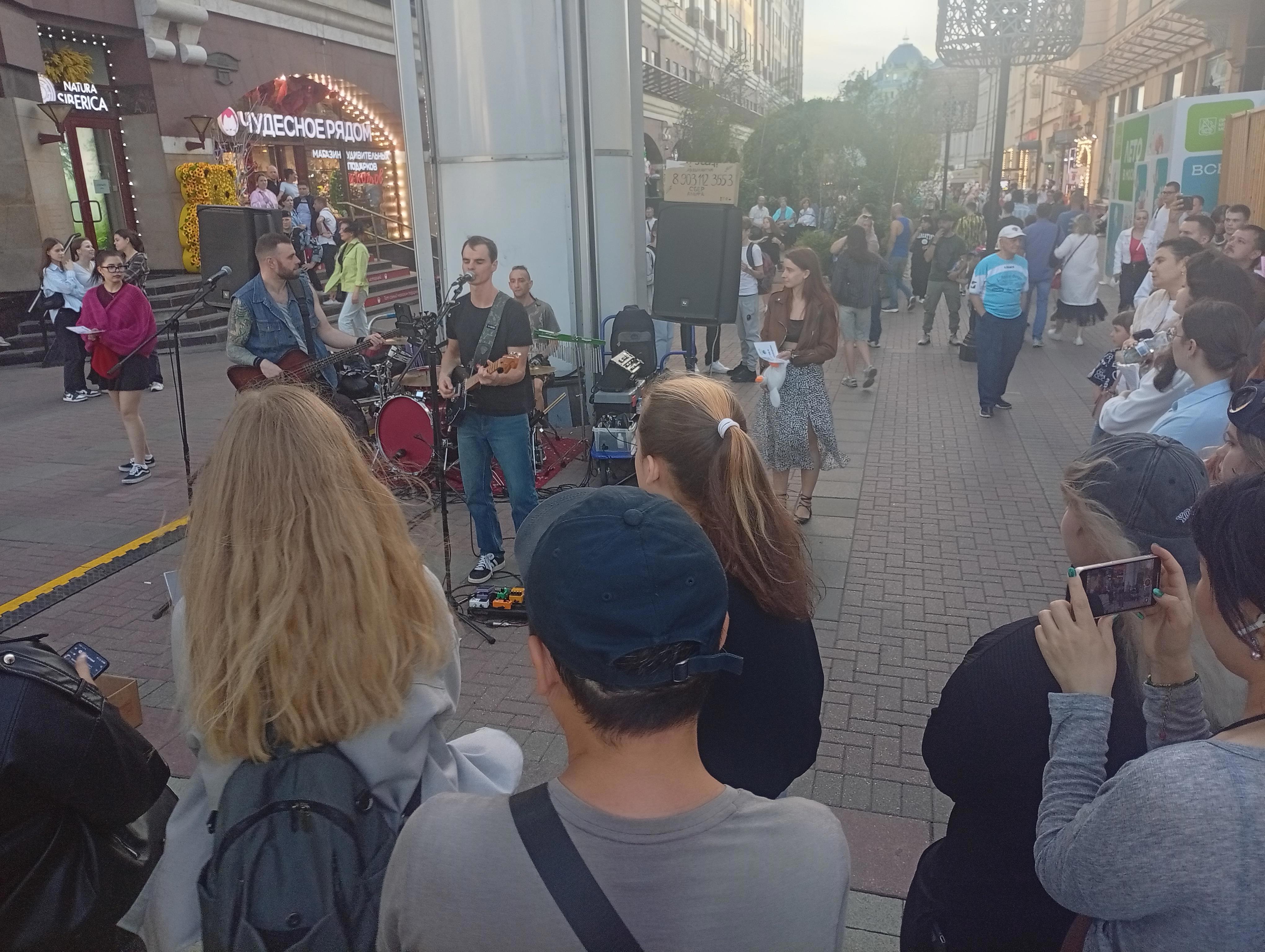 Но главное дальше, я уже вернулся и тут... Ребята играют хиты русского рока и классно играют и поют, устроили настоящее шоу. А люди подпевают как на концерте, музыканты молчат, а зрители поют припевы. Звучат... звери, Ленинград и... Еще много чего. Им бы на эстраду. И ... Все песни про любовь. Зрители всех возрастов... Подростки, средний возраст, бабушки и дедушки.... Такоэач у нас молодежь... И вот что она хочет... Любовь и радость, остальное уже всех достало... Это видно... И еще несколько фото