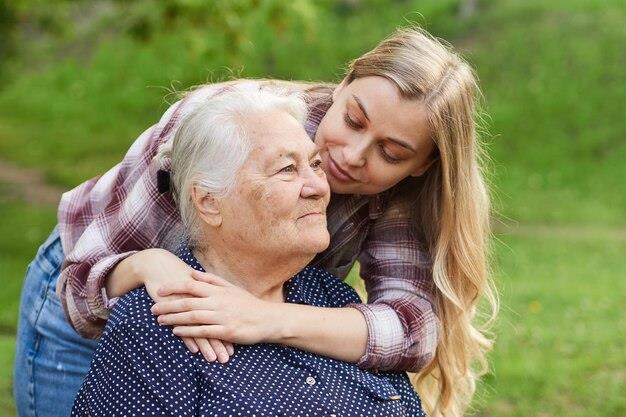 Девушка взяла старушку за руку и погладила ее.