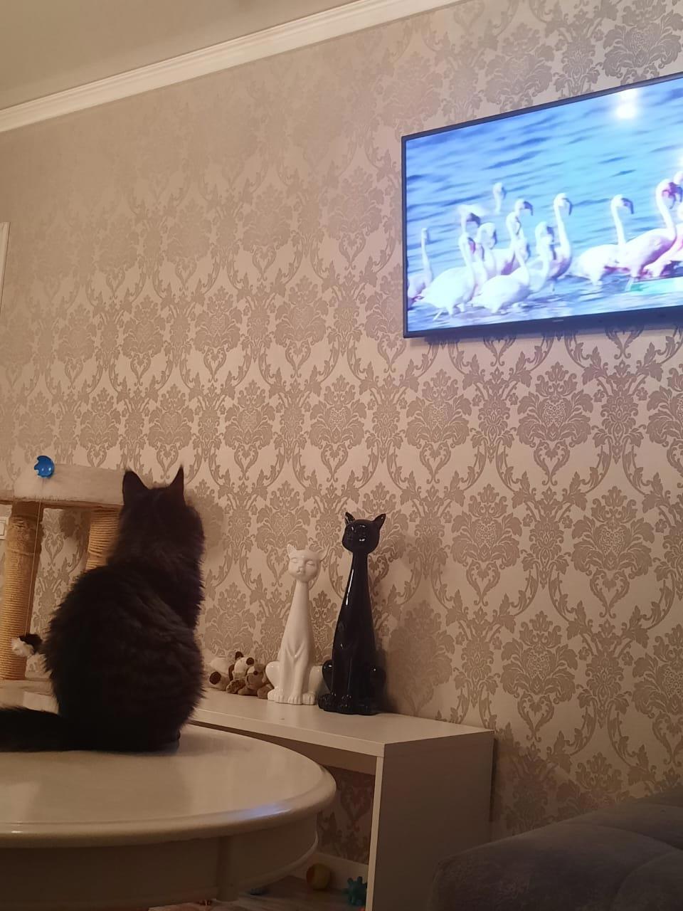 Барсик любил смотреть передачи о животных.