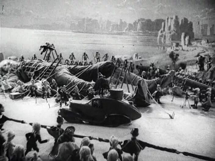 Через неделю "рыбаки" и "моряки" организовывали нашим двум отрядам экскурсию на Адалары, так что времени было мало, но надо было успеть. В "Заговор" с радостью вошли члены кружка лепки и работа закипела. Все задействованные пионеры не покладая рук лепили из художественного пластилина фигурки лилипутов, клеили из картона домики и танки. В день экскурсии дружественные рыбаки доставили на остров спецгруппу с инвентарем и вот наступил момент торжества справедливости. В разгар экскурсии, когда Наташа в окружении друзей и поклонников, продвигаясь по официальному маршруту подошла к заранее выбранной нами точке рандеву, гордая девица вдруг услышала в стороне громкие крики радости и изумления. Первая красавица снизошла до того, что бы посмотреть, а что же там нашли эти "детишки". Жалко у меня не было фотоаппарата, что бы запечатлеть выражение ее лица, когда она увидела в тени под скалой элементы боя королевской армии Лилипутии с рабочими отрядами из Подземных заводов. (Рабочих кстати было гораздо больше чем королевских солдат, так как в фильме у них были абсолютно одинаковые лица и их было гораздо легче лепить, чем характерных отрицательных героев), а вход в тоннель и машина начальника полиции, были вообще как в фильме .