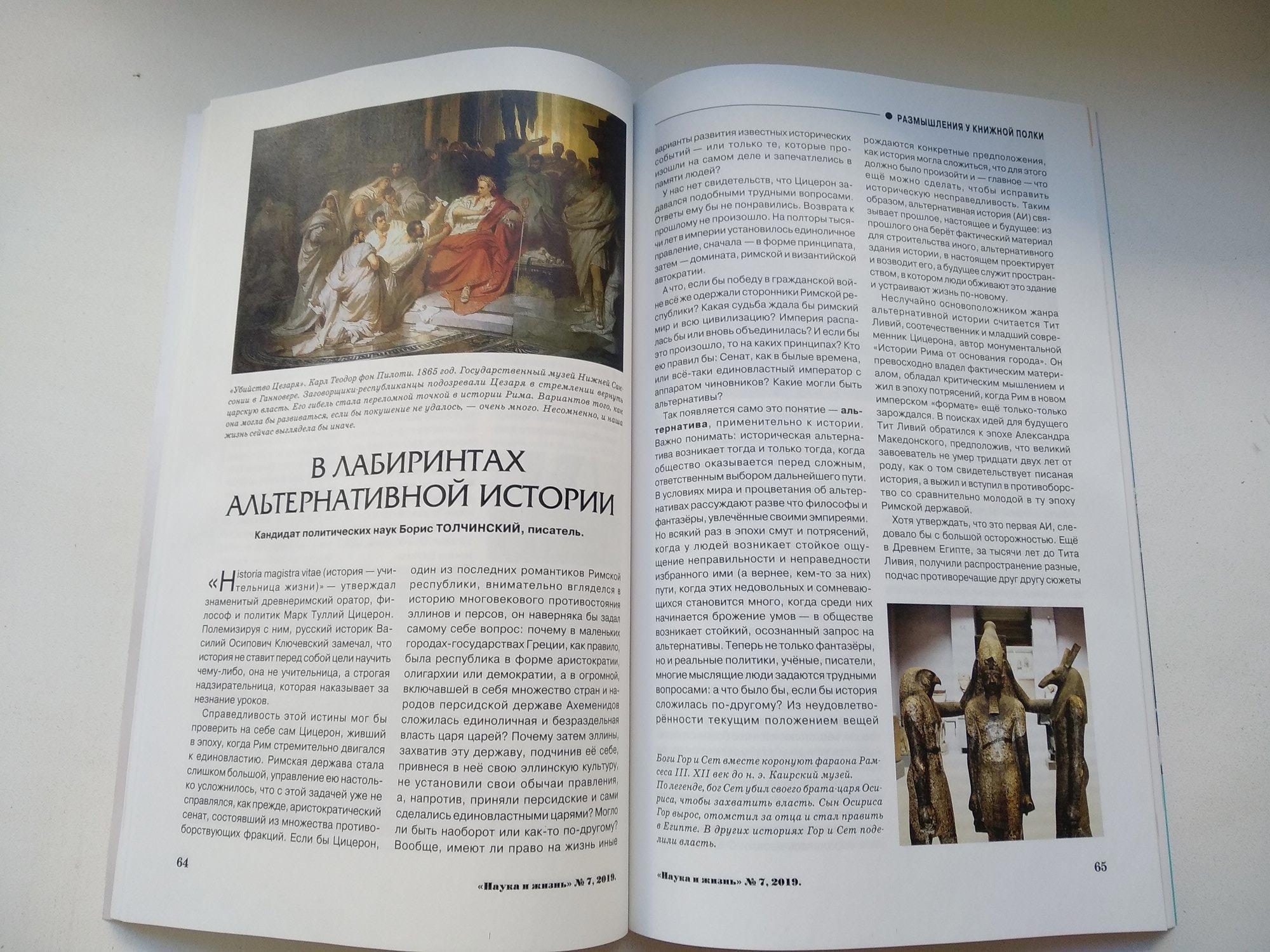 Автор: Борис Толчинский aka Брайан ТолуэллРовно 6 лет назад в июльском номере журнала «Наука и жизнь» (2019) появилась статья «В лабиринтах альтернативной истории». Название моё, и весь текст мой, но журнальный вариант оказался на треть короче полного авторского. Цензура здесь не причём, просто в бумажном журнале нашлось место для статьи в 18 тыс. знаков, не больше. Тогда это не казалось проблемой: с редакцией была твёрдая договорённость о продолжении и развитии многоплановой темы АИ в моих дальнейших публикациях. Но они так и не состоялись. Первая статья оказалась также и единственной в этом когда-то очень уважаемом издании.