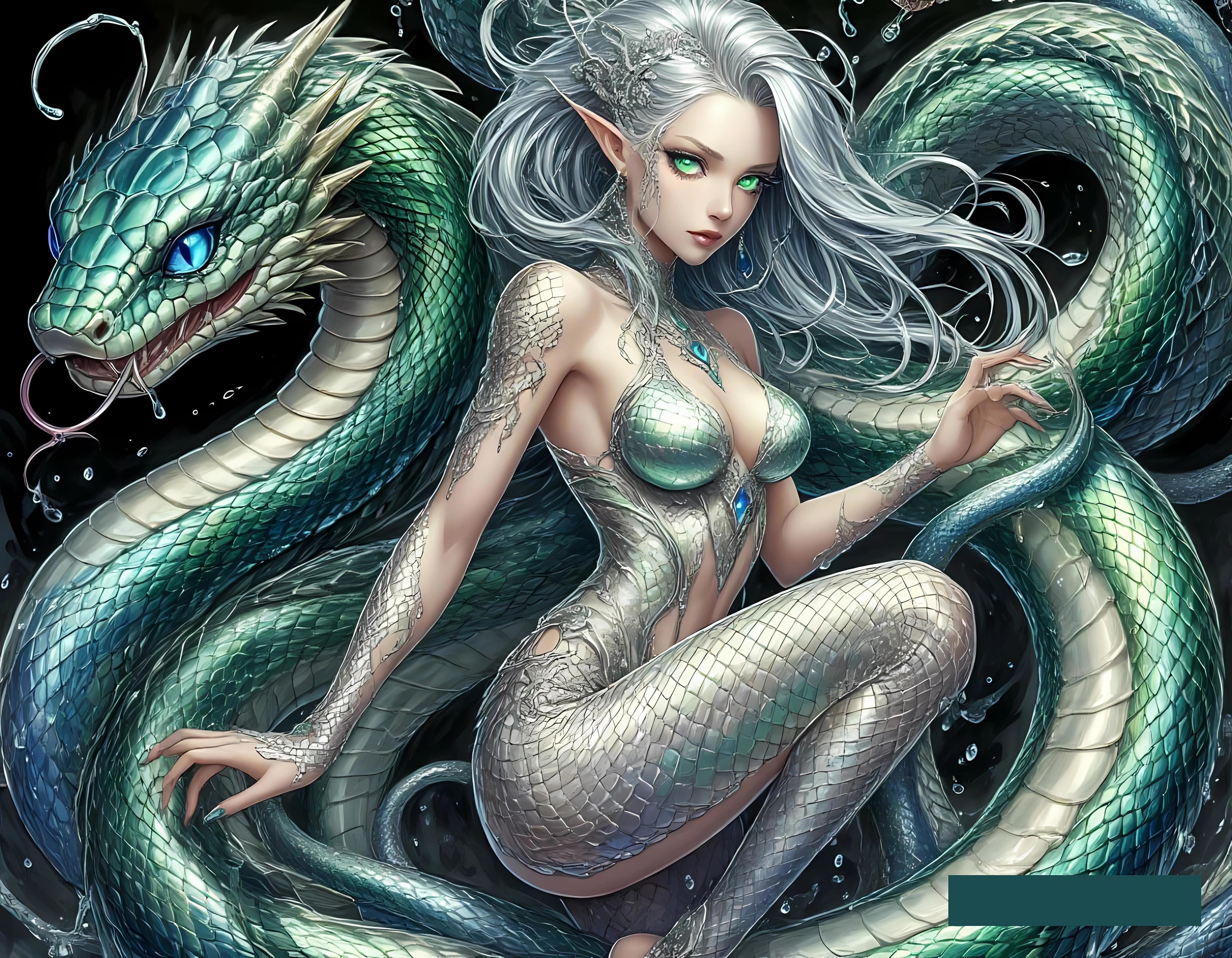 А здесь была робкая попытка в ее серебряный костюм на выступлении с шариками и змеями, но немного не хватило очарования нейросети. Хотя мне нравится =)