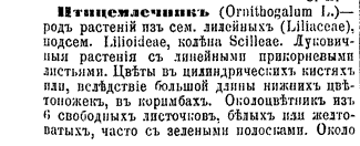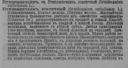 Собственно уже только это ставит точку в вопросе о том, был ли известен и культивировался ли птицемлечник хвостатый в России в XIX веке. Ответ: безусловно, да. И делалось это достаточно массово, чтобы попасть в главную энциклопедию страны.