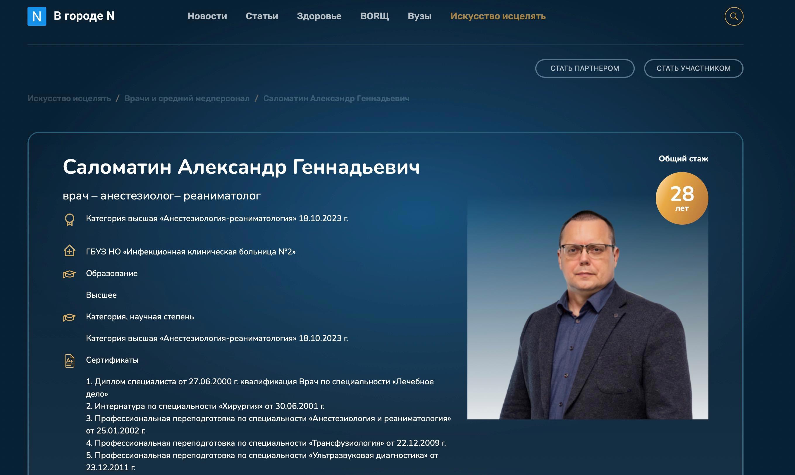 что в 2025 году в Нижнем Новгороде его выдвинут на соискание региональной премии «Врач года», он бы наверное, не поверил.
