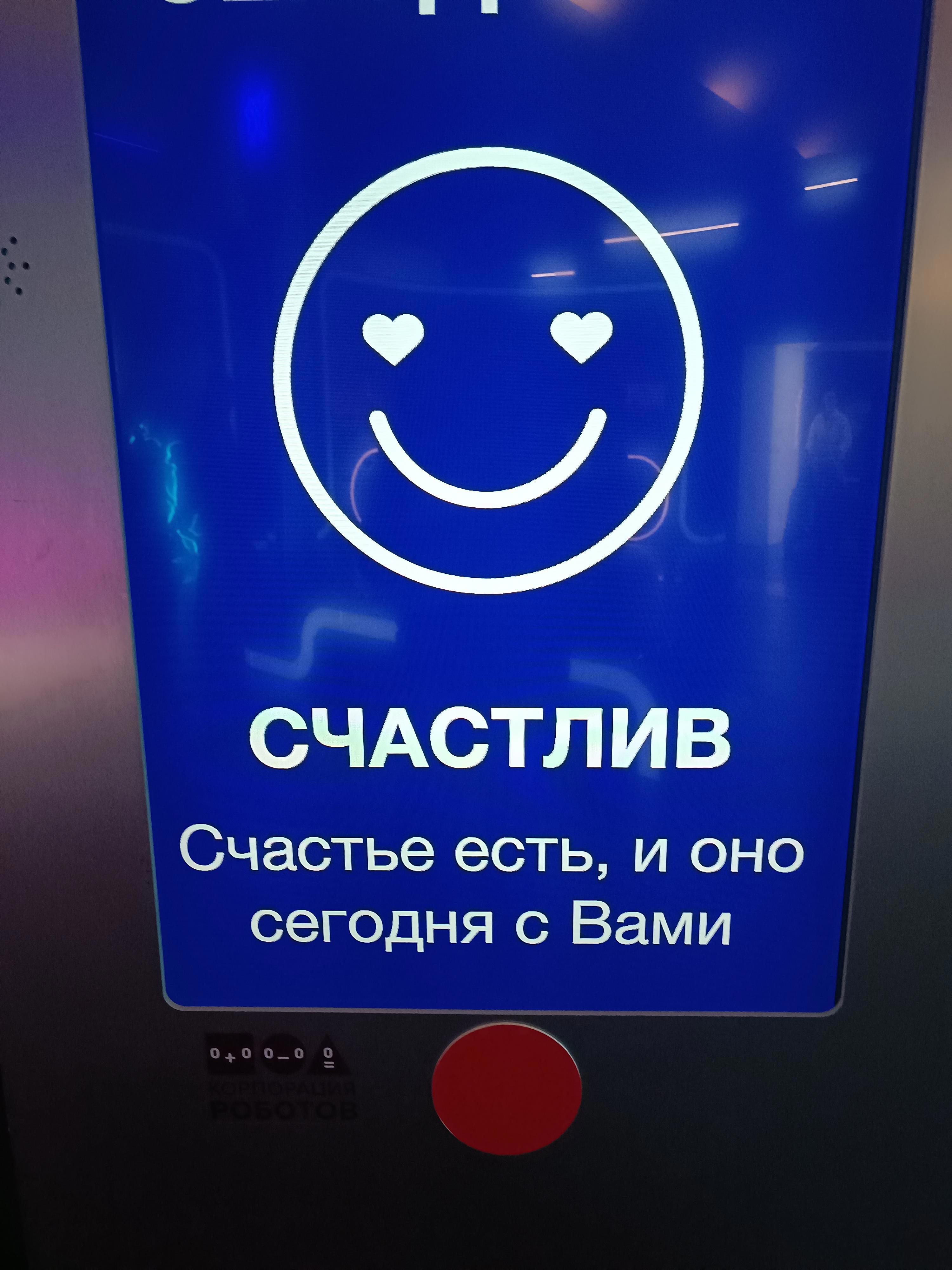 Это фото с выставки роботов на ВДНХ. Конкретно этот робот считывает эмоции. Встаёшь на кружок, он тебя сканирует и выдаёт ответ. При мне ни разу не повторился, было интересно, что он скажет про меня)) И когда я прочитала результат, подумала, а разве может быть иначе, когда Вселенная так меня балует?))