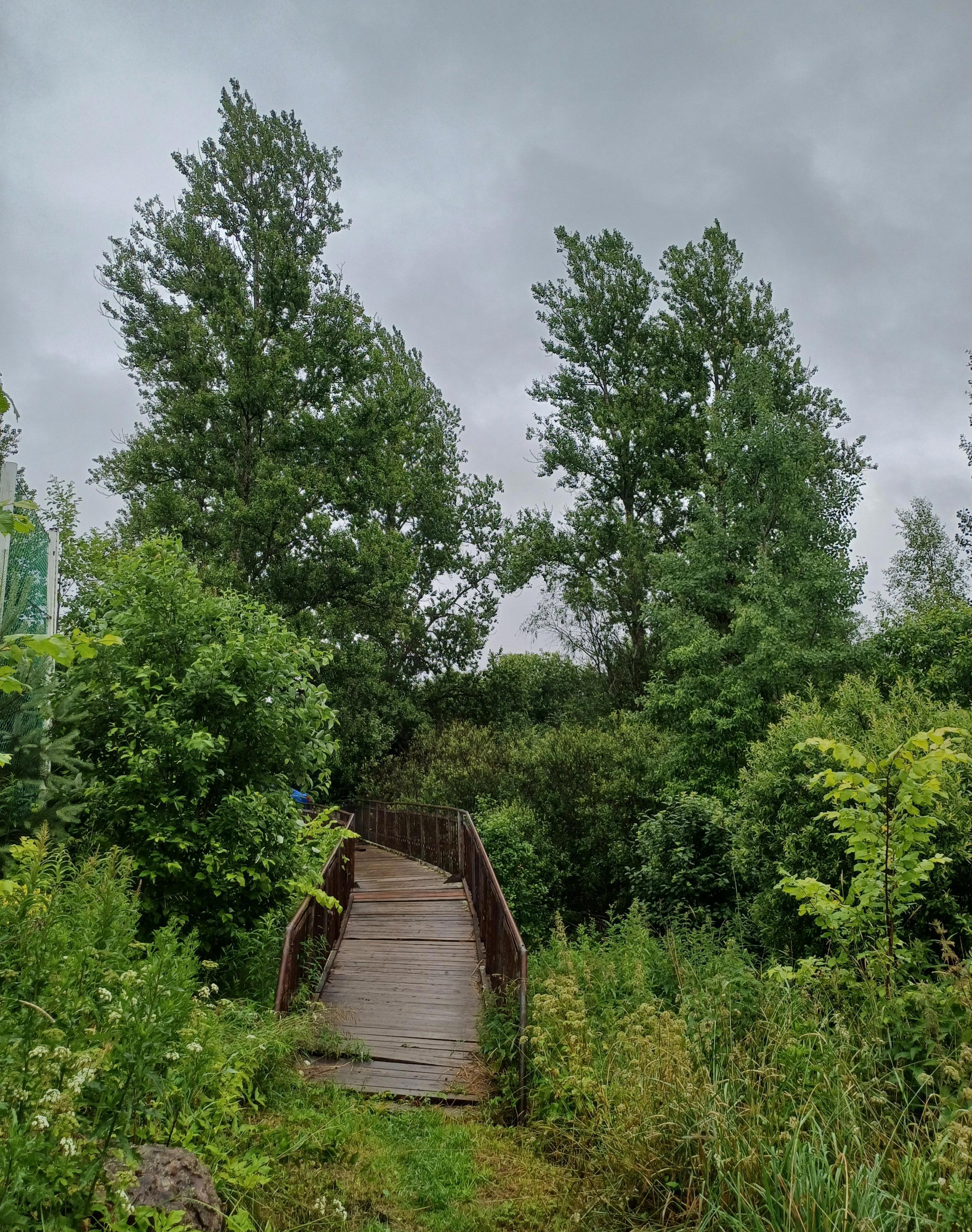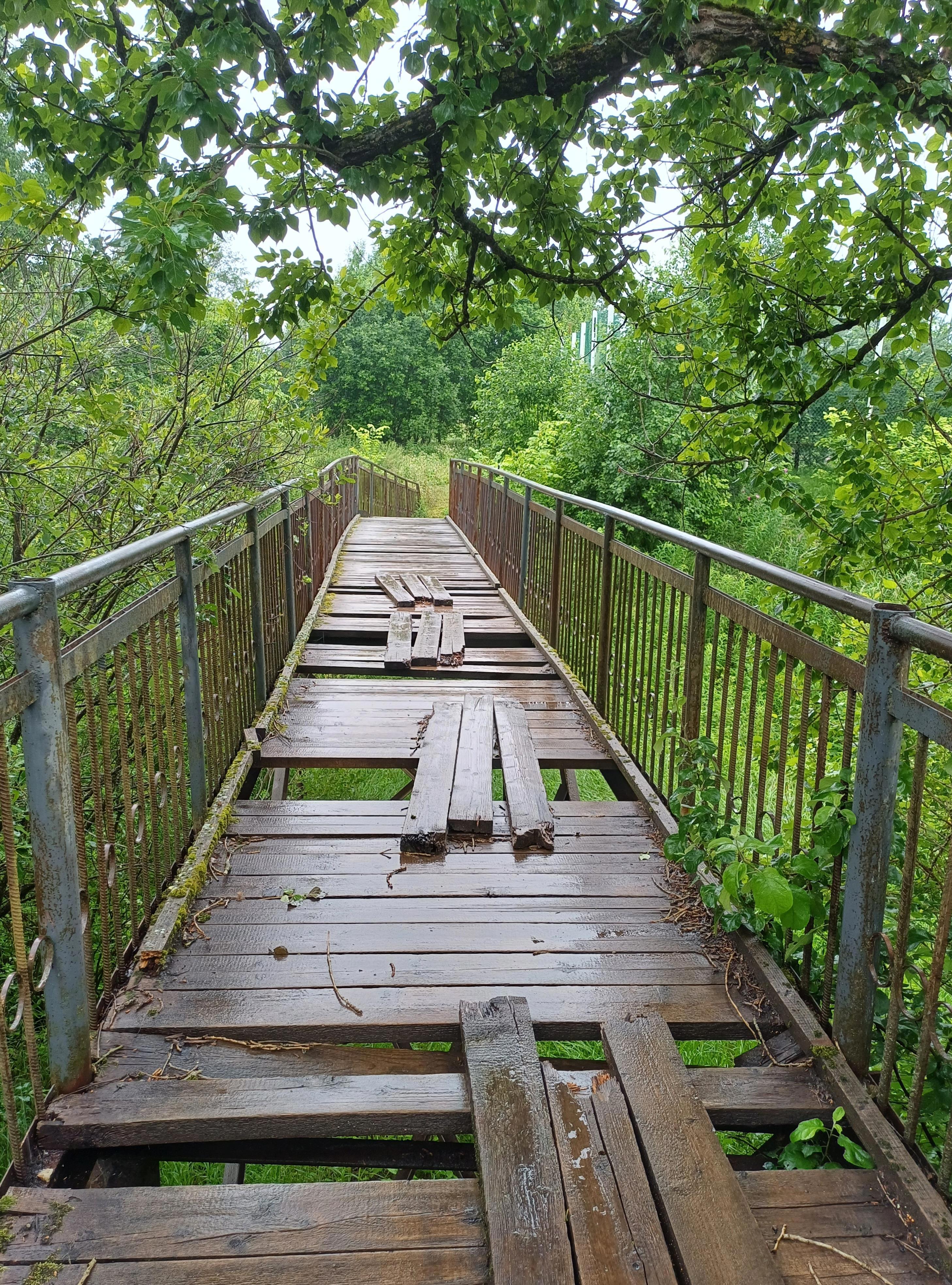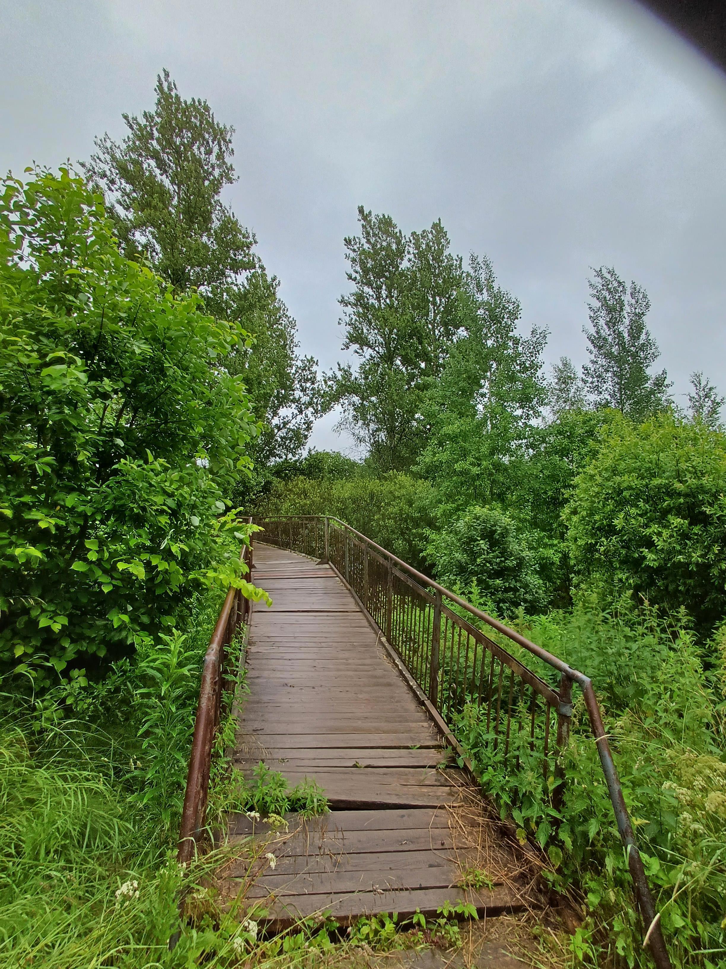 Впрочем, мостик оказался довольно крепким - доска под ногой провалилась всего один раз. Но вид с другой стороны, увы, не очень - всё заросло. Так что ракурс с дороги лучший :(