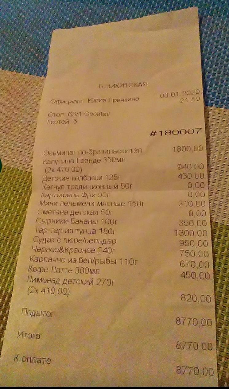 Вот есть такой чек из Кофемании пятилетней давности...определите кто кушал