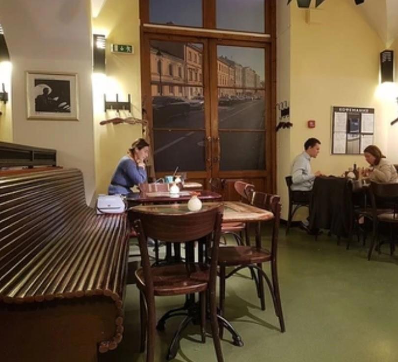 а вот тот столик за которым - парни и пили кофе.