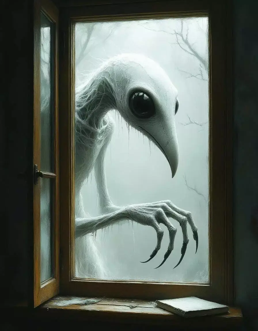 Автор: Ирина ВалеринаЗа окном второго этажа, медленно выплыв из тумана, замаячила большая голова с длинным, загнутым кверху тонким носом, похожим на сучок. Белёсое, словно вытканное из морочной пелены чудище прижало ладонь с несоразмерно длинными, очень тонкими пальцами и провело по стеклу острыми когтями. Раздался противный, скрежещущий звук, будто кто-то пилил ножовкой кость.
