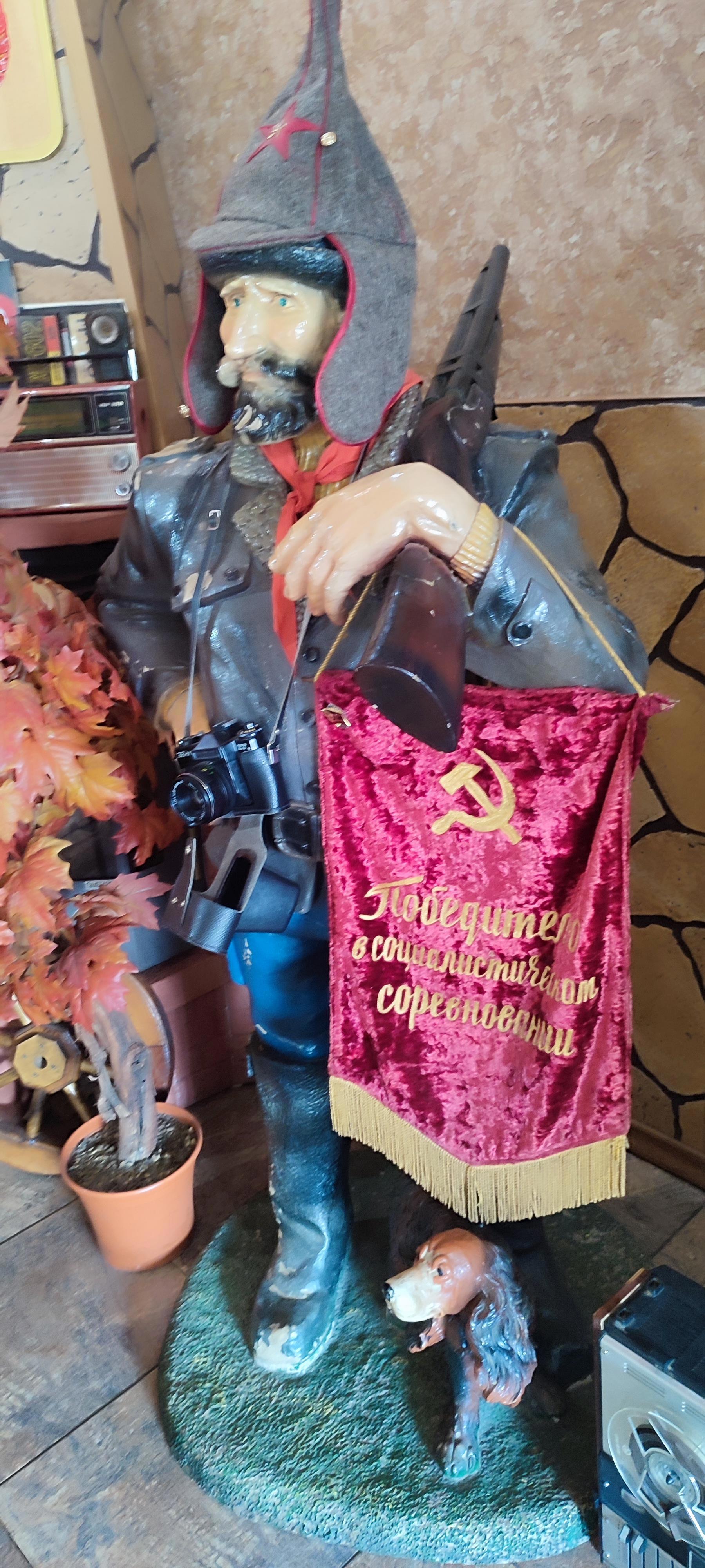 Выбрался. Скоро попалась кафешка с надписью СССР. На входе вот такой хостес. Очень вкусно готовят!