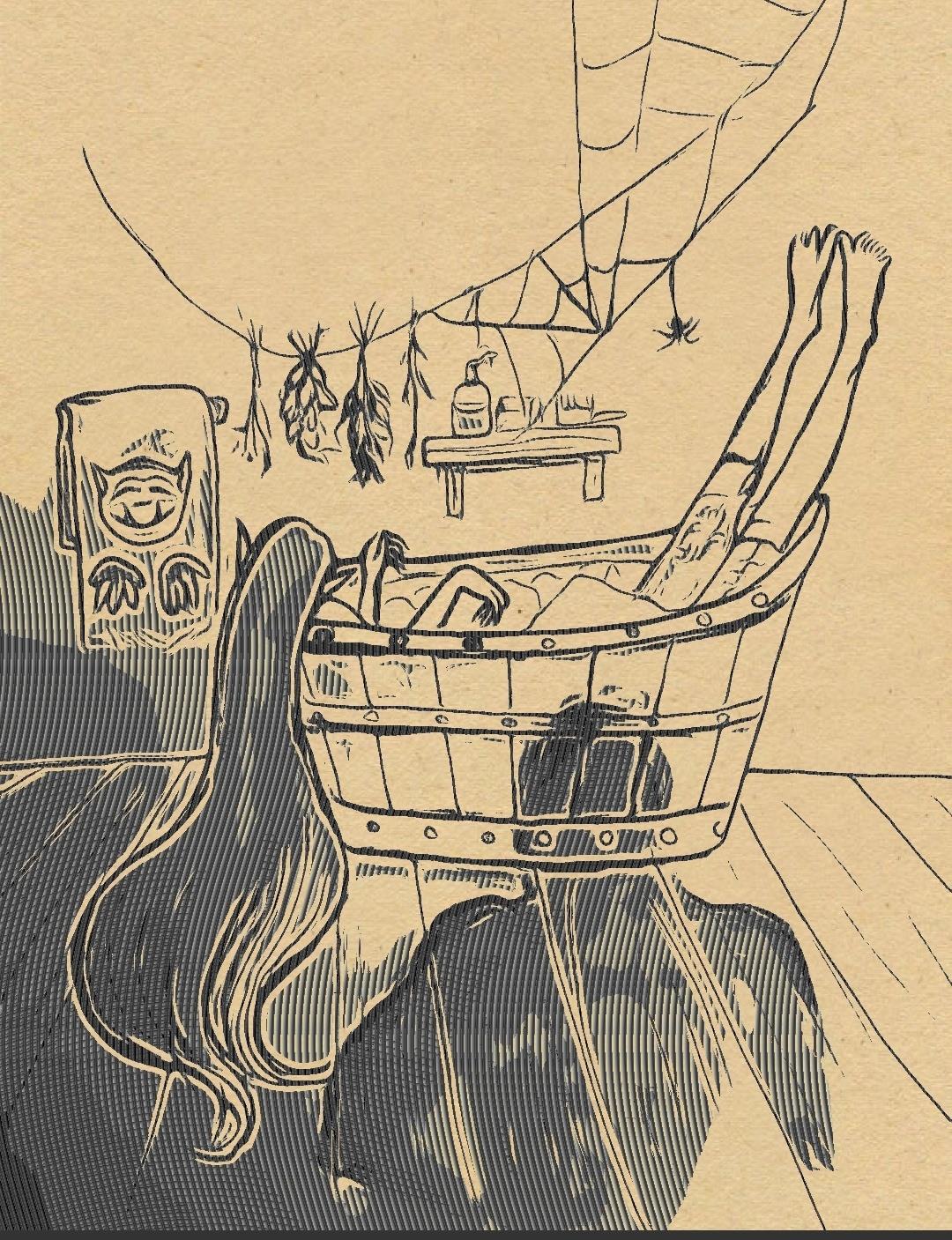 Так-то главы иногда не располагают к карикатурным зарисовкам. К примеру в одной из них героиня хоронит недавно обретенного друга. Вариаций с ними было штук шесть. Две лучшие боролись за публикацию: