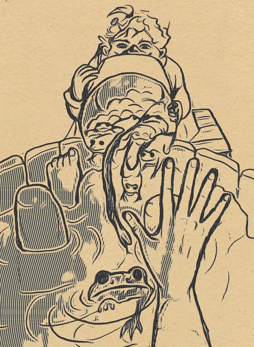 Нарисованная с нереальной легкостью, за пару штрихов. И почему-то настолько удавшаяся (с моей точки зрения), что захотелось продолжить делать забавные зарисовки к каждой главе.