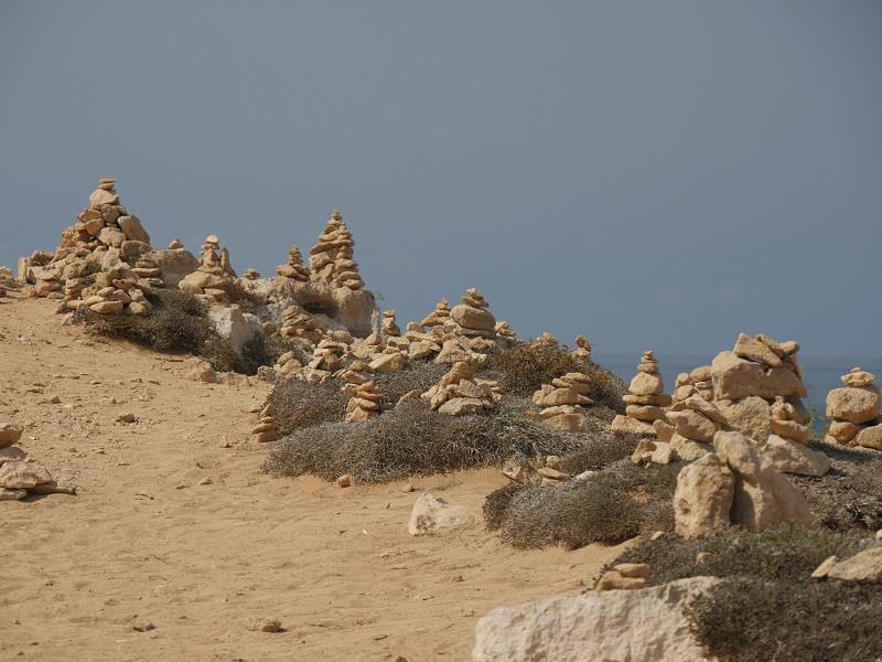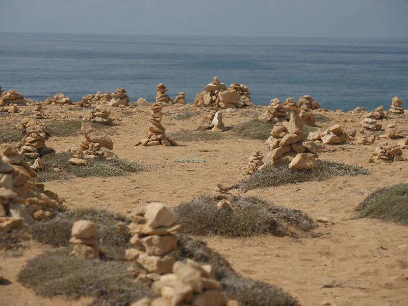 Примерно с футбольное поле кусок берега заполнен пирамидками из камня.