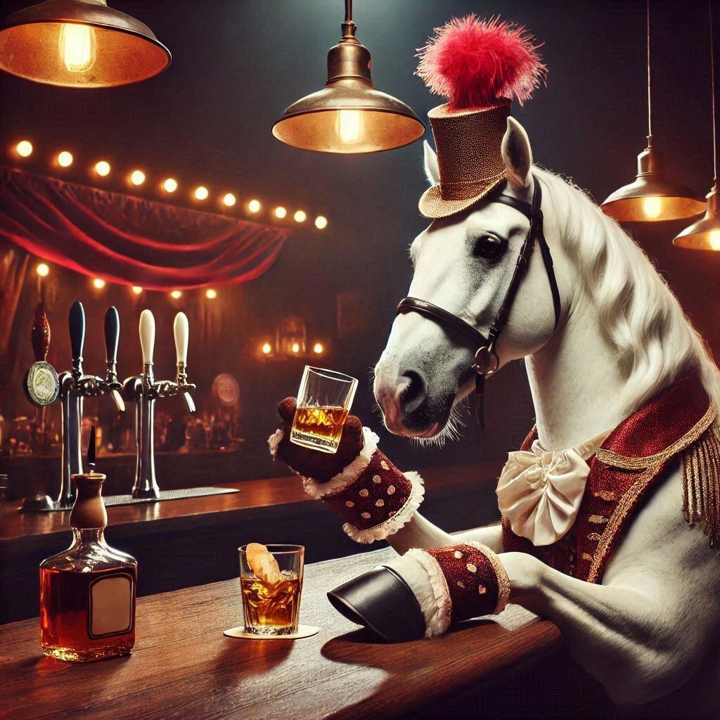 Чтобы вы понимали, что я серьёзно, даже картинку на тему нижеописанного интервью создавать не стала. Потому вот вам творение Copilot по запросу "белая цирковая лошадь с плюмажем на голове пьёт в баре" =]