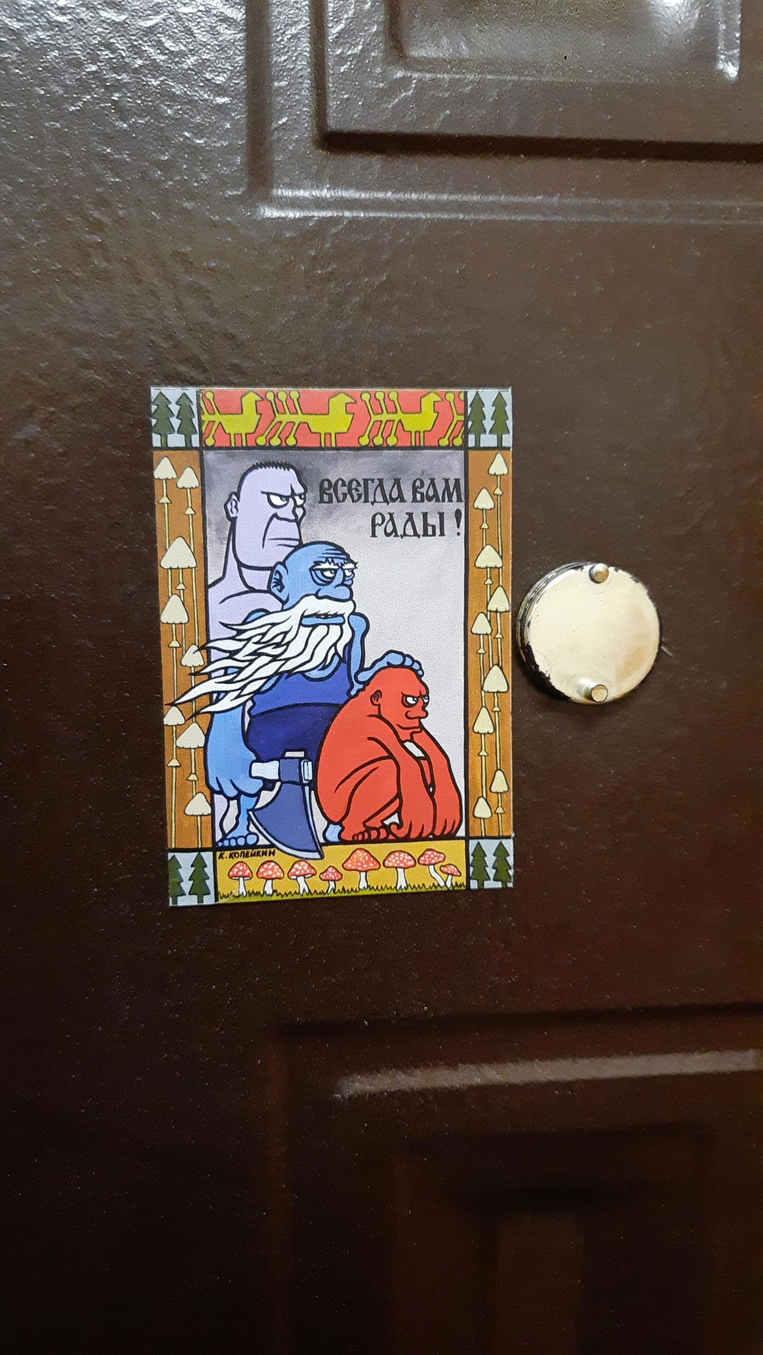 Вот это — наша дружная семья в ожидании гостей. Красненькая внизу это я, потом с бородой длинной — папа (у него борода в душе, так то он бреется), а выше — Володя.