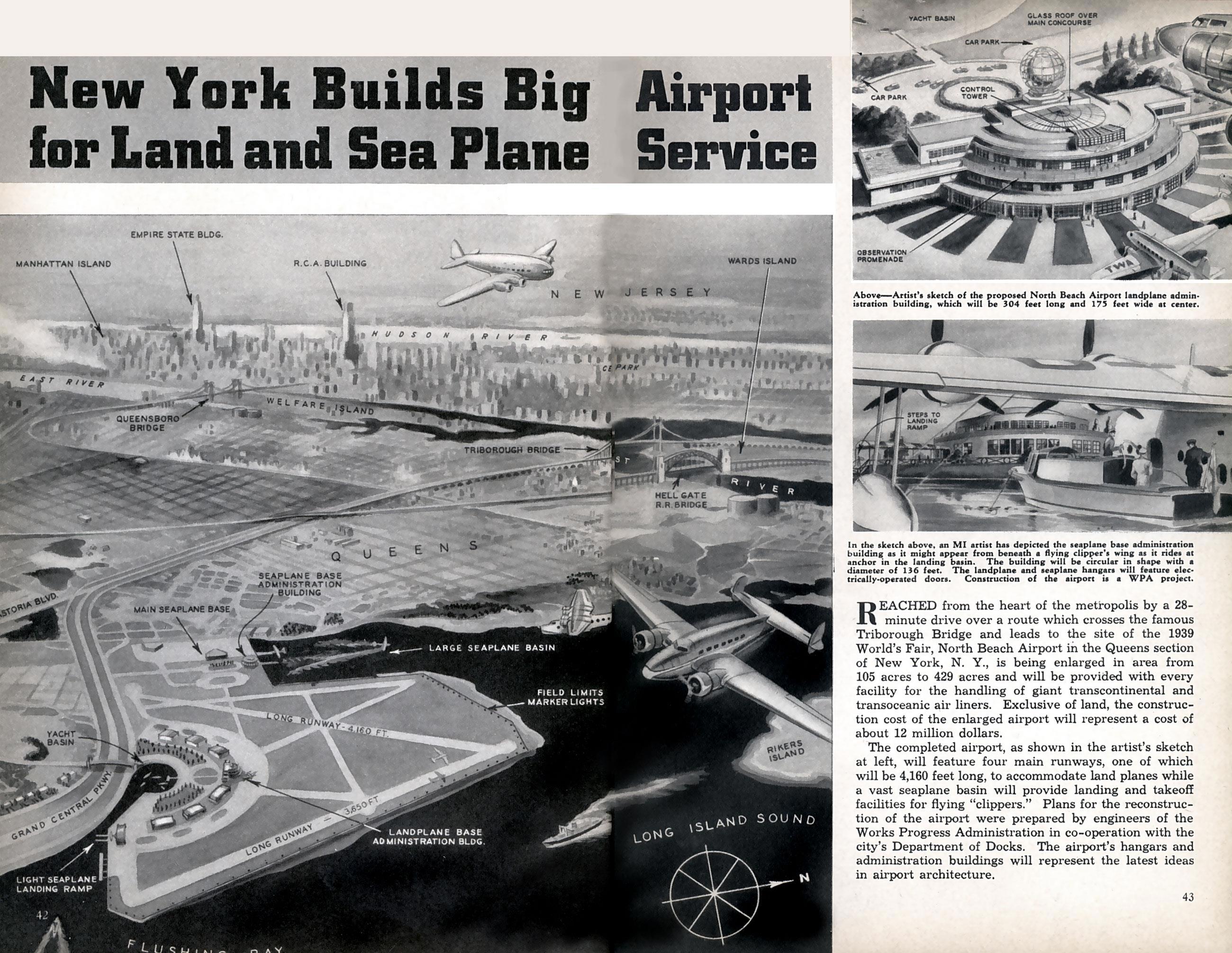 Аэропорт в Нью-Йорке, который планировался к постройке для обслуживания наземных бортов и гидропланов, довоенные планы