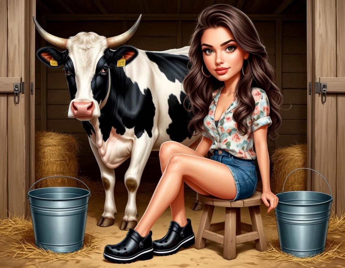 Я осторожно устроилась на табурете, как меня учили — правым боком к корове, ведро аккуратно зажато между коленями. Первая попытка дотронуться до тёплого вымени закончилась тем, что Бурёнка презрительно фыркнула и дёрнула ногой, а я едва не оказалась в объятиях свежего навозного коврика. Вторая — тем, что струйка молока брызнула мне прямо на шорты.