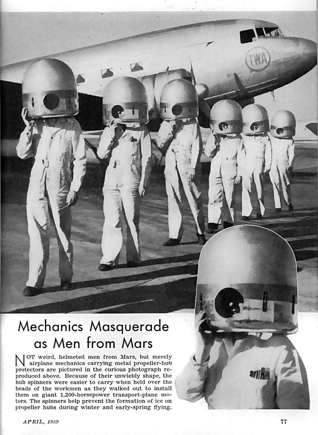 Марсианские человечки... на самом деле на головах механиков колпаки с оконцовки вала воздушных винтов.