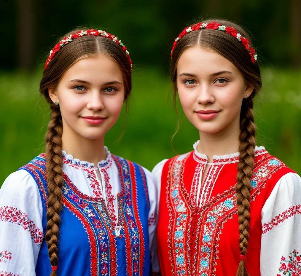 Как бы героини не одевались, у них должна быть льняная рубаха с вышивкой и лента с височными кольцами - колтами: