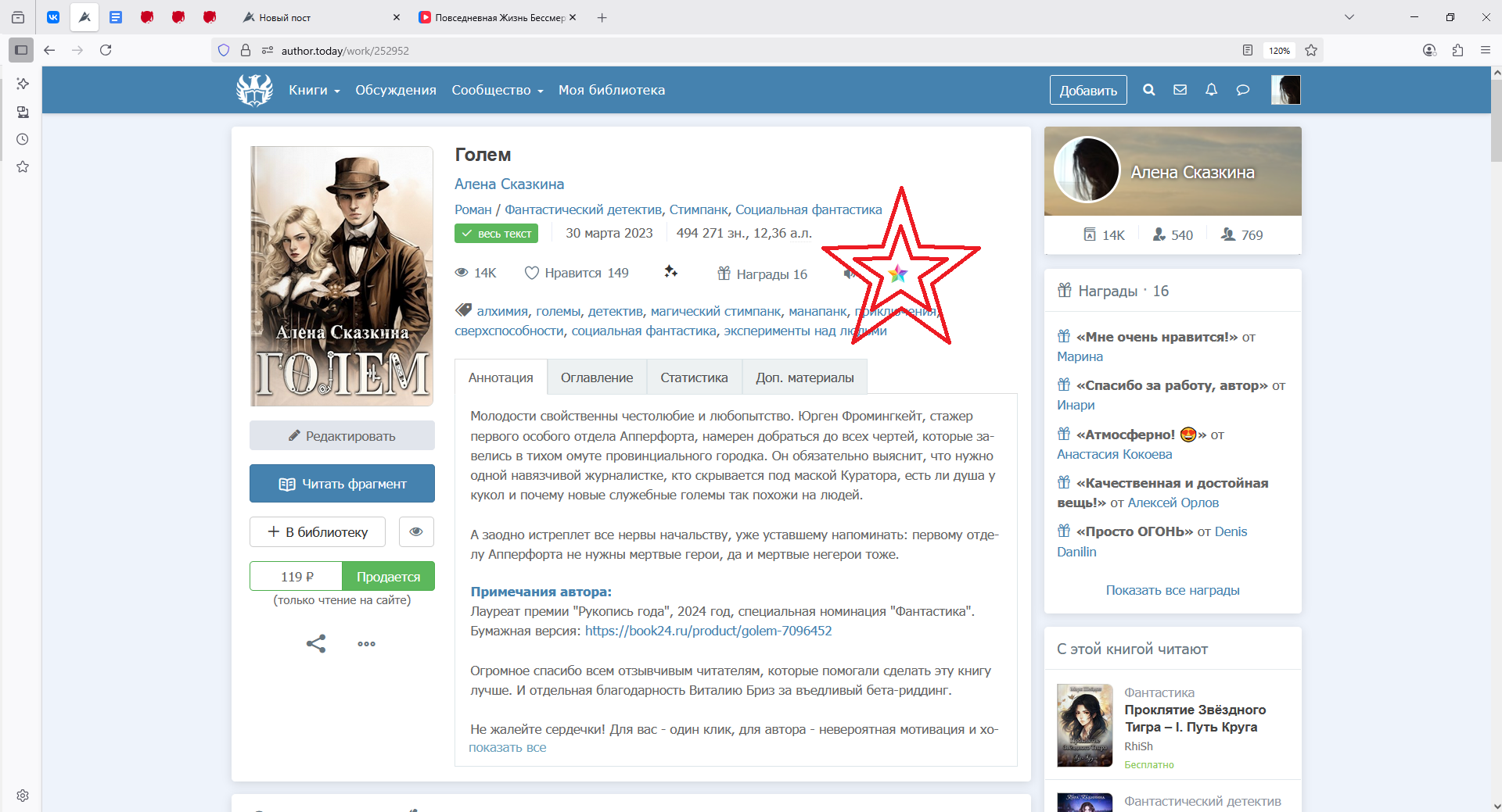 Это уже третья моя история, получившая положительную оценку рецензентов АТ. До этого звездочка появлялась на "Белой пелене" и "Праве на доверие". Я от души благодарю команду сайта за проделанную работу. И мне очень лестно, что мое творчество по-прежнему вам заходит))
