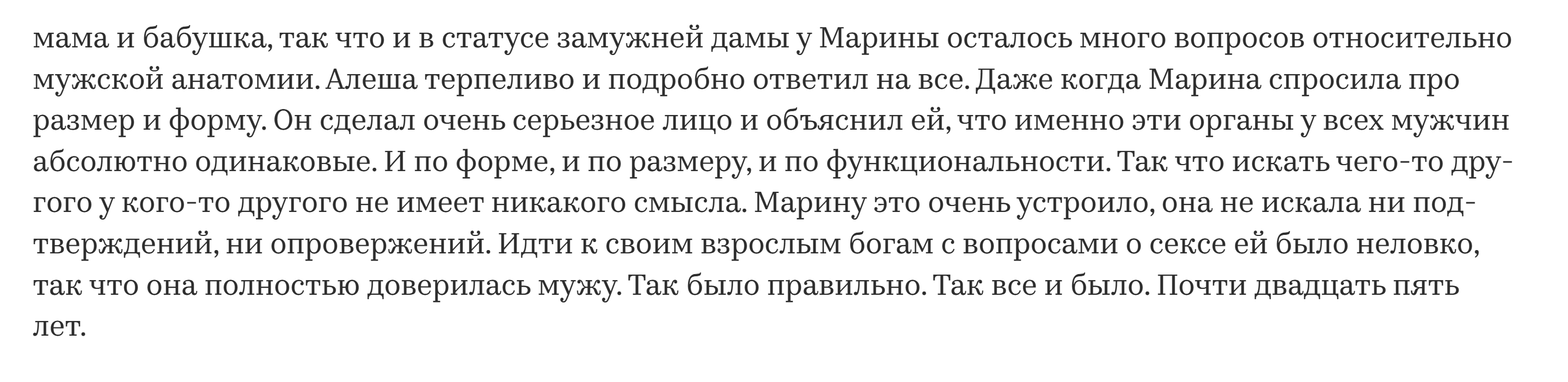 И да: я, конечно, не удивлюсь и я даже жду того, чтобы кто-то из представителей мужского пола принялся доказывать мне, что размер ровно никакого значения не имеет.