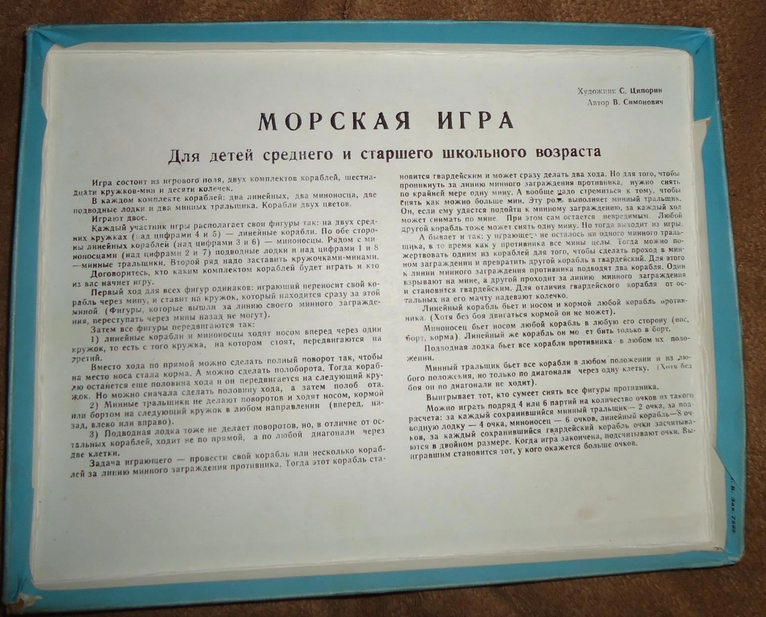 Увы, игра уже досталась мне без части фигурок. Я, будучи находчивым ребёнком, заменил модельки фишками собственного изготовления, нарисовав нужные корабли на фишках мин. А недостающие мины заменив бумажными квадратиками.Качество изготовления очень хорошее, между прочим - коробка до сих пор крепкая, хотя хранилась порой не в лучших условиях.
