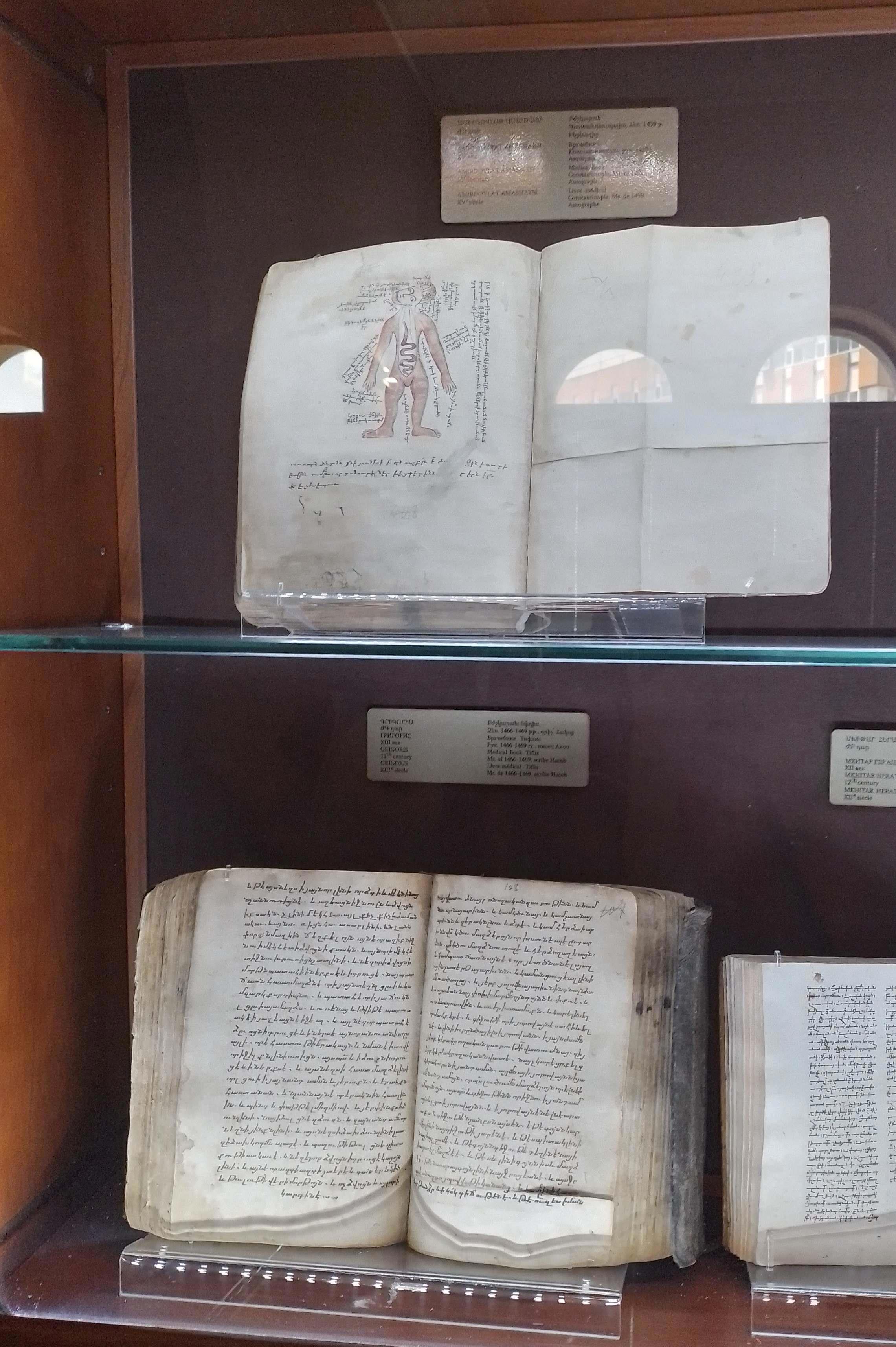 Врачебник известного армянского врача XV века Амирдовлата Амасиаци, в котором представлено строение человека. Рукопись 1459 г. Амирдовлат Амасиаци был придворным главным врачом-окулистом турецкого султана Мухаммеда II Завоевателя, но из-за козней завистников был изгнан из дворца, однако во время эпидемии черной чумы был снова призван ко двору и восстановлен в своем звании. О нем подробно рассказывается здесь.